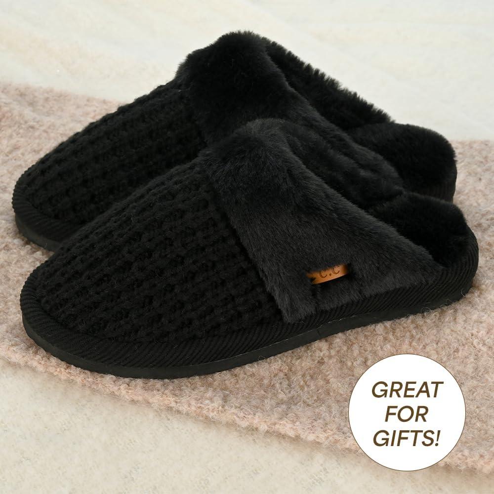 imageCC Pattern Knitted SlipOn Slippers With Faux Fur Lining IndoorOutdoor House For WomenWaffle Black