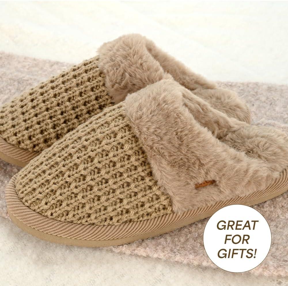 imageCC Pattern Knitted SlipOn Slippers With Faux Fur Lining IndoorOutdoor House For WomenWaffle Mocha