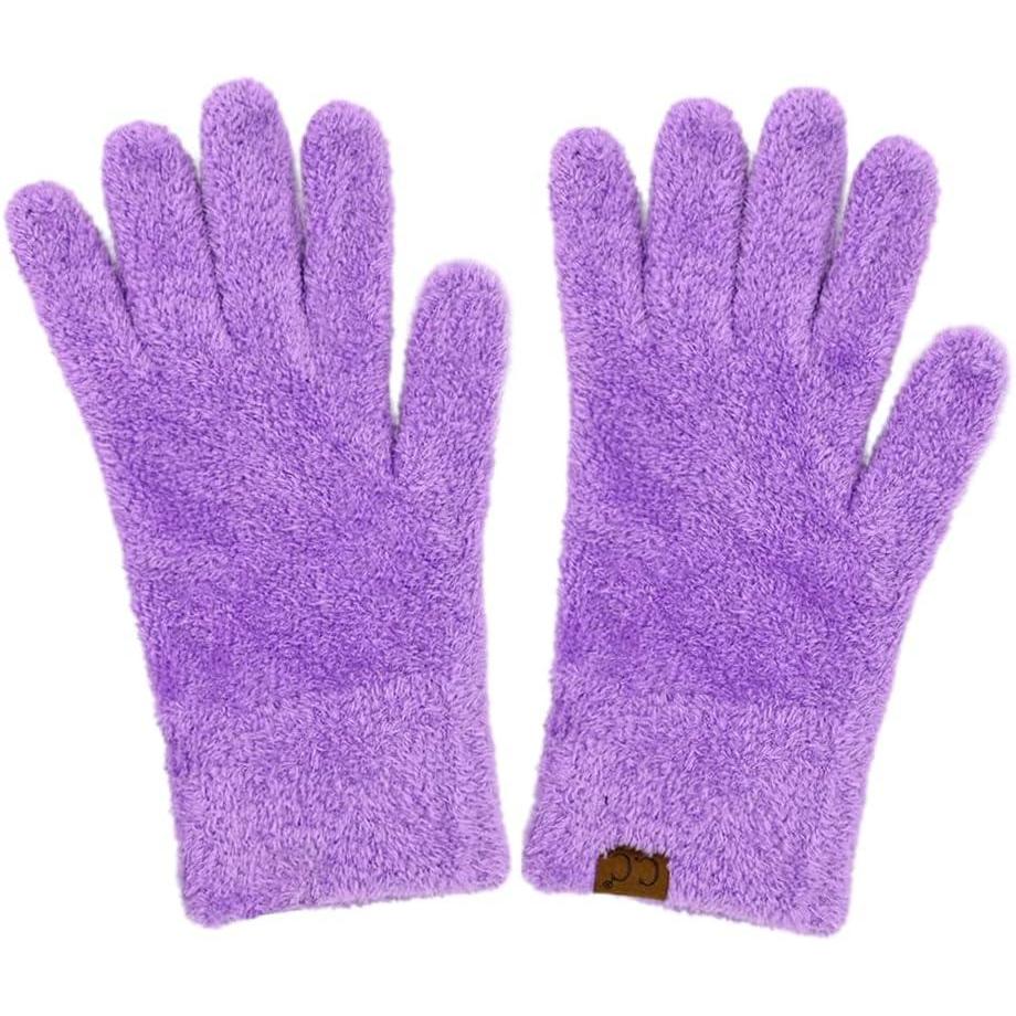 C.C Plush Terry Chenille Gloves For Women - Fuzzy Stretchable Soft Warm Cold weather Winter Gloves(Lavender)