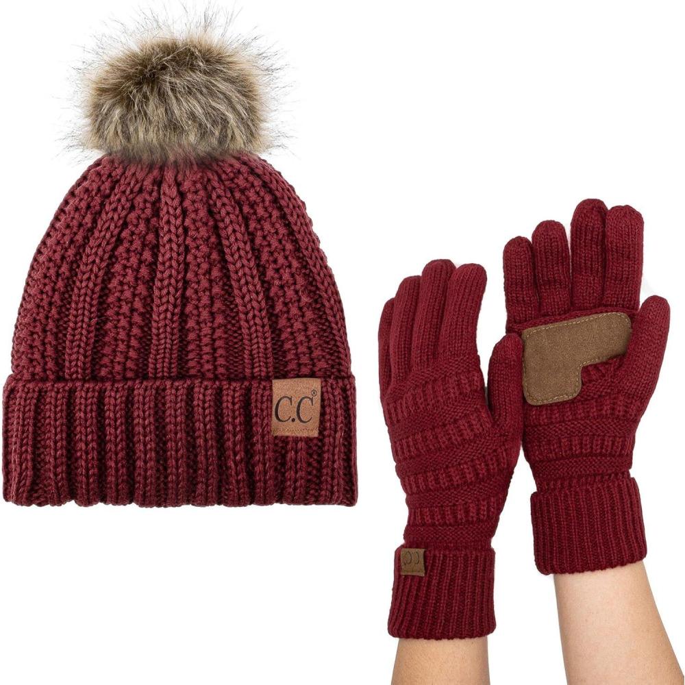 A true classic. Stay warm in style in the C.C Pom Cable Knit Beanie and Glove Set. Quality knit, better than the competition, our C.C brand comes in various solid and mix colors to match your cold-weather outfit.