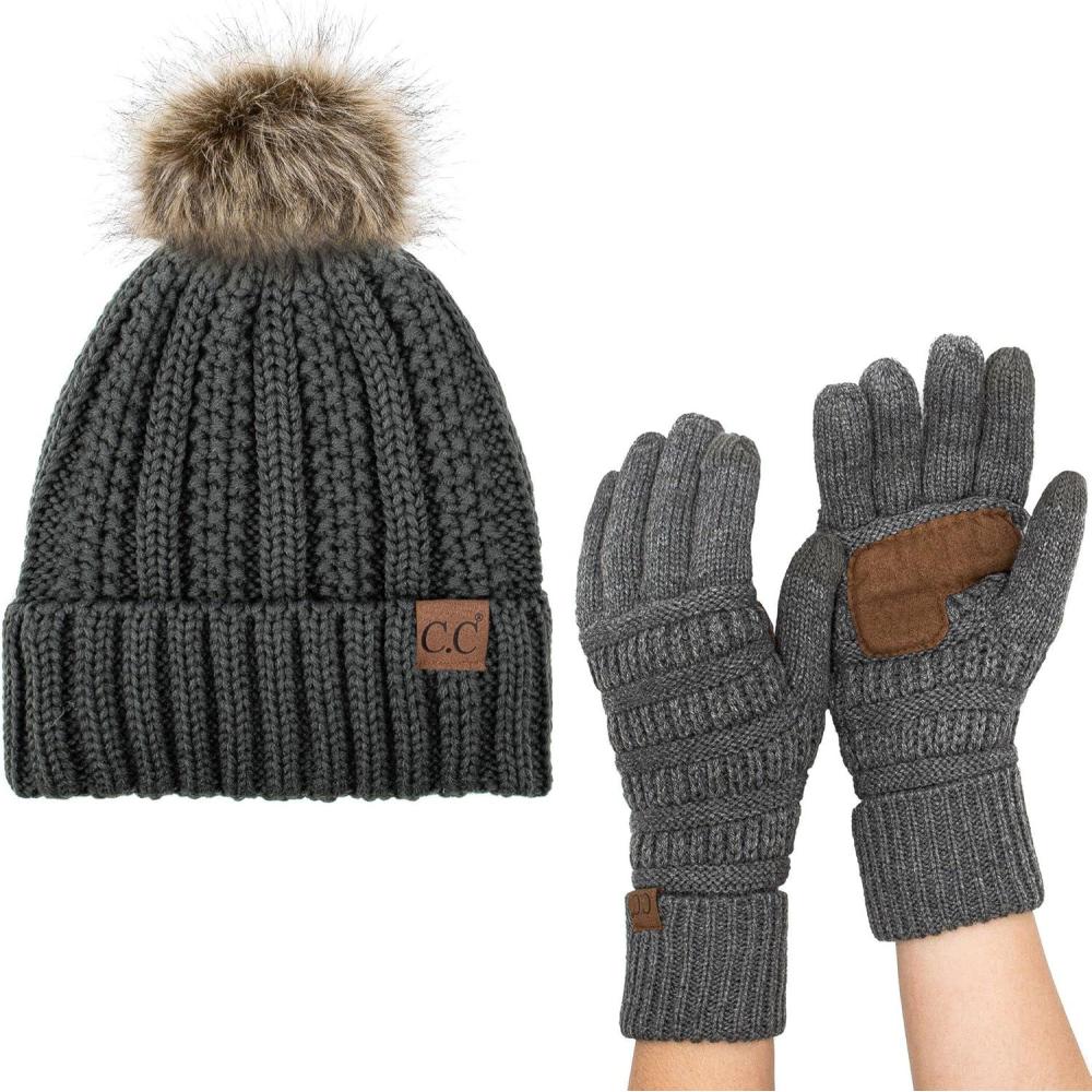 A true classic. Stay warm in style in the C.C Pom Cable Knit Beanie and Glove Set. Quality knit, better than the competition, our C.C brand comes in various solid and mix colors to match your cold-weather outfit.