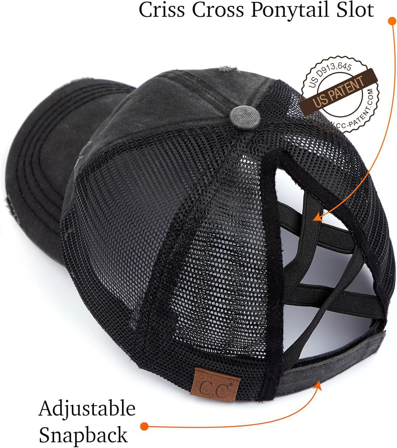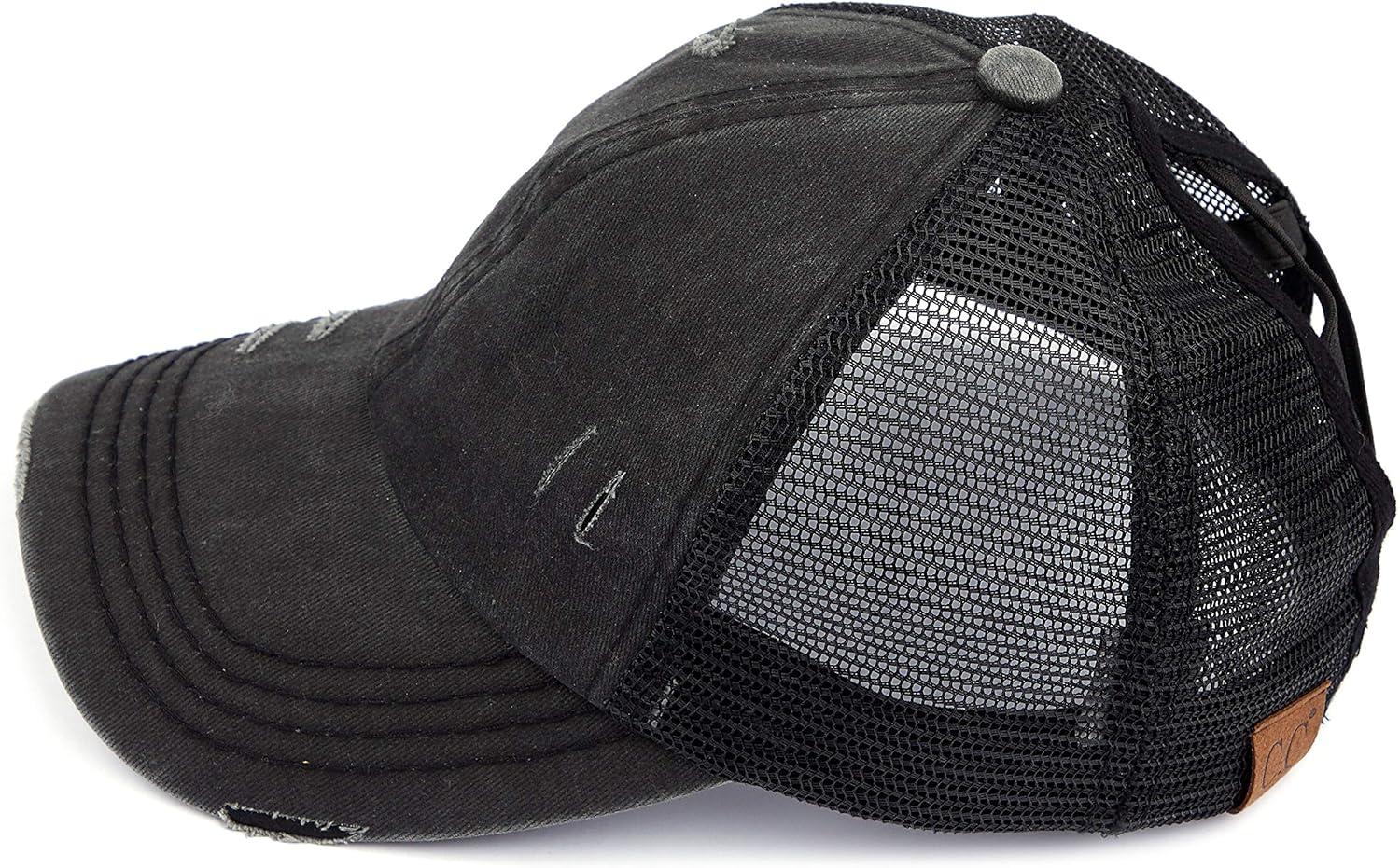C.C Ponycap Messy High Bun Ponytail Adjustable Glitter Mesh Trucker Baseball Cap(A Elastic Band-black)