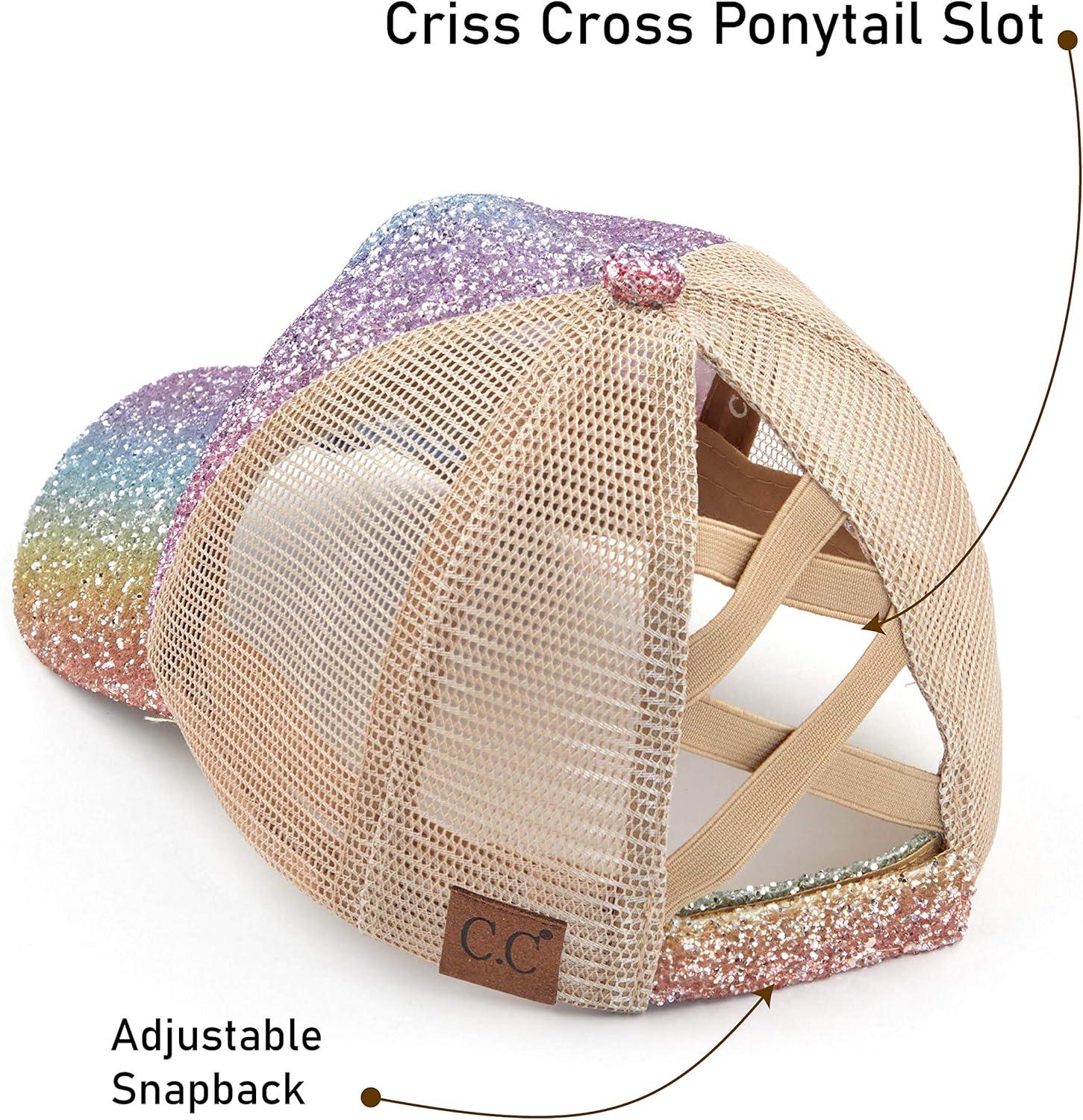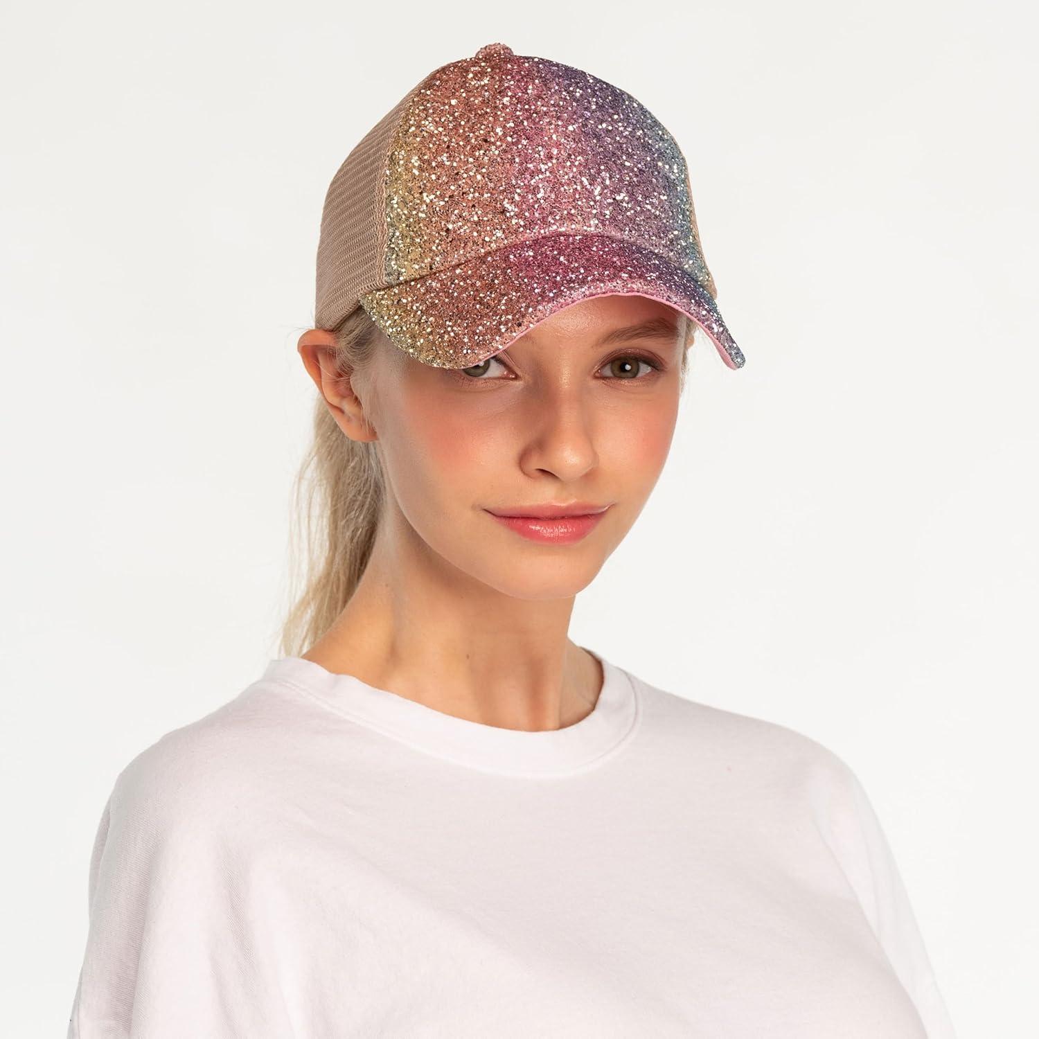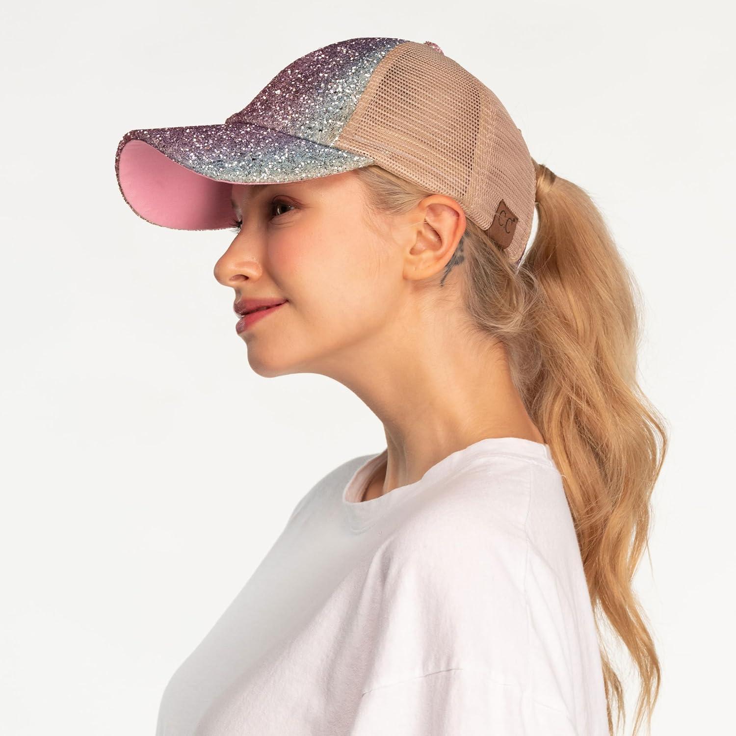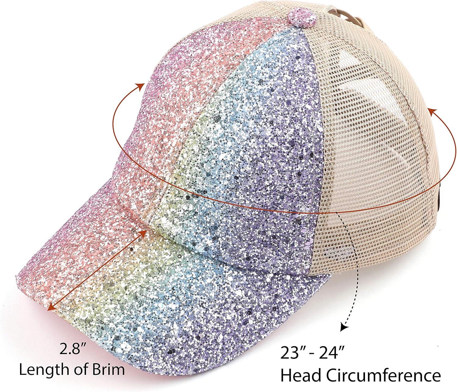 C.C Ponycap Messy High Bun Ponytail Adjustable Glitter Mesh Trucker Baseball Cap(A Elastic Band-crystal Ombre Mermaid)