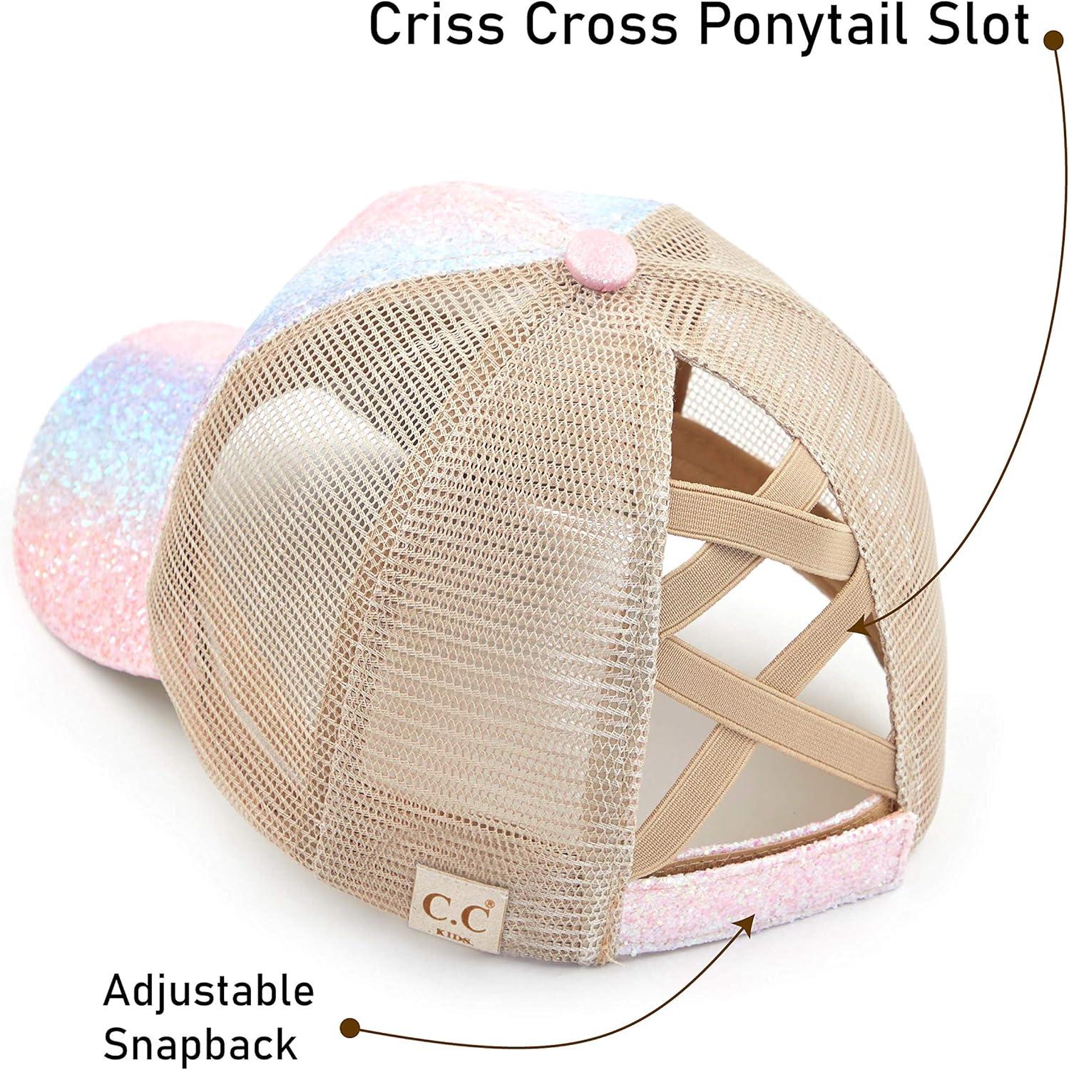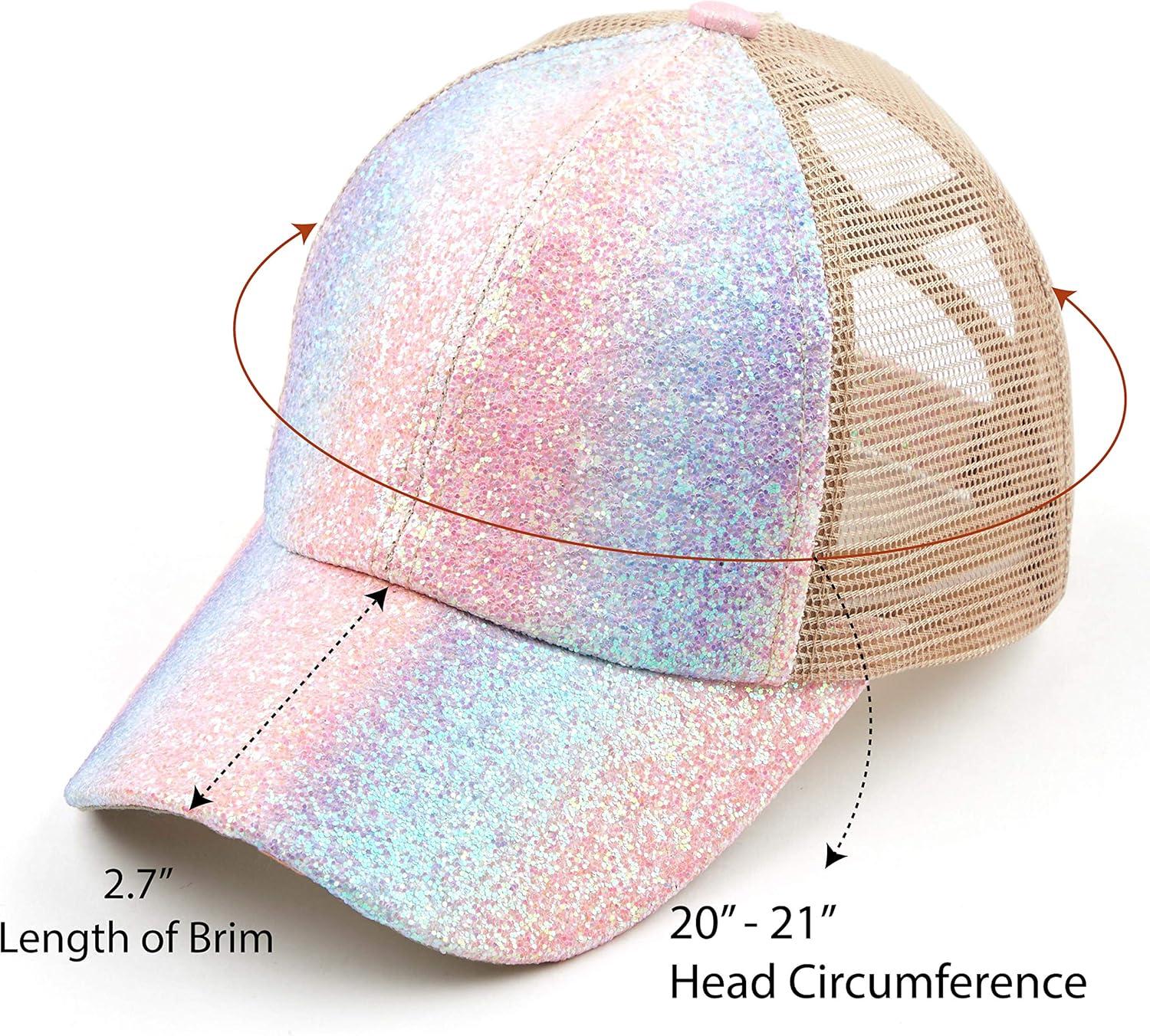 C.C Ponycap Messy High Bun Ponytail Adjustable Glitter Mesh Trucker Baseball Cap(A Elastic Band-ombre Sparkle Glitter Pink)