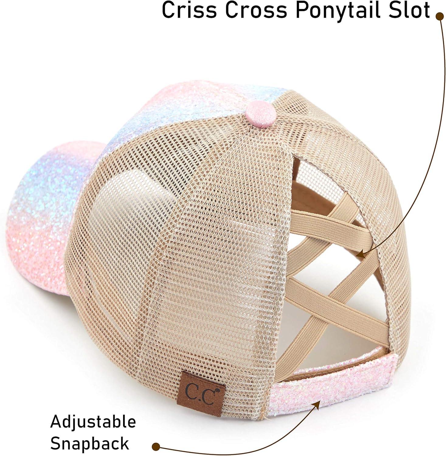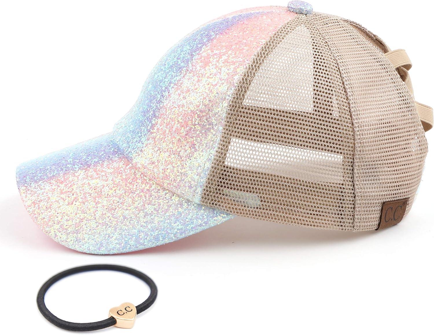 C.C Ponycap Messy High Bun Ponytail Adjustable Glitter Mesh Trucker Baseball Cap(A Elastic Band-crystal Ombre Unicon)