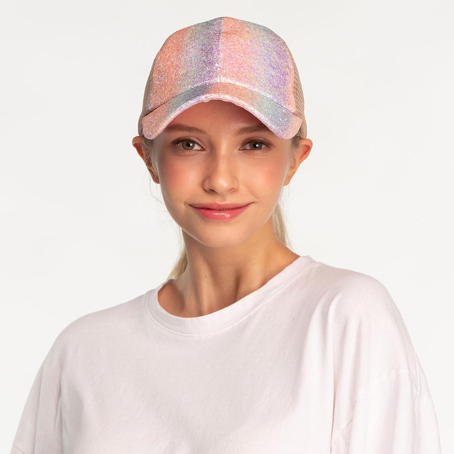 imageCC Ponycap Messy High Bun Ponytail Adjustable Glitter Mesh Trucker Baseball CapA Elastic Bandcrystal Ombre Uniconkids