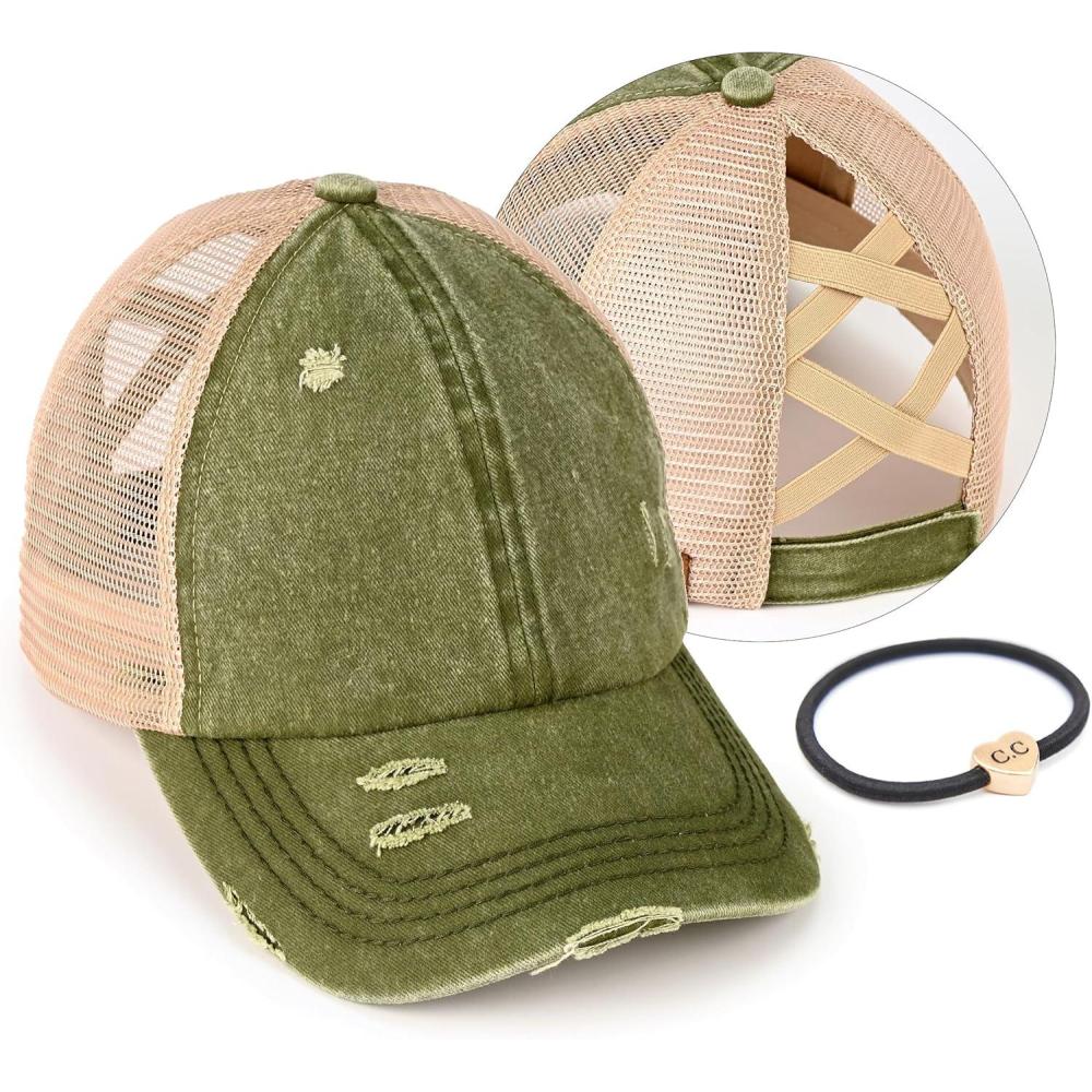 Don’t break the bank! Get the C.C Ponycap Messy High Bun Ponytail Adjustable Glitter Mesh Trucker Baseball Cap(Dk. Olive) you want at a price you can afford during our markdown sale.