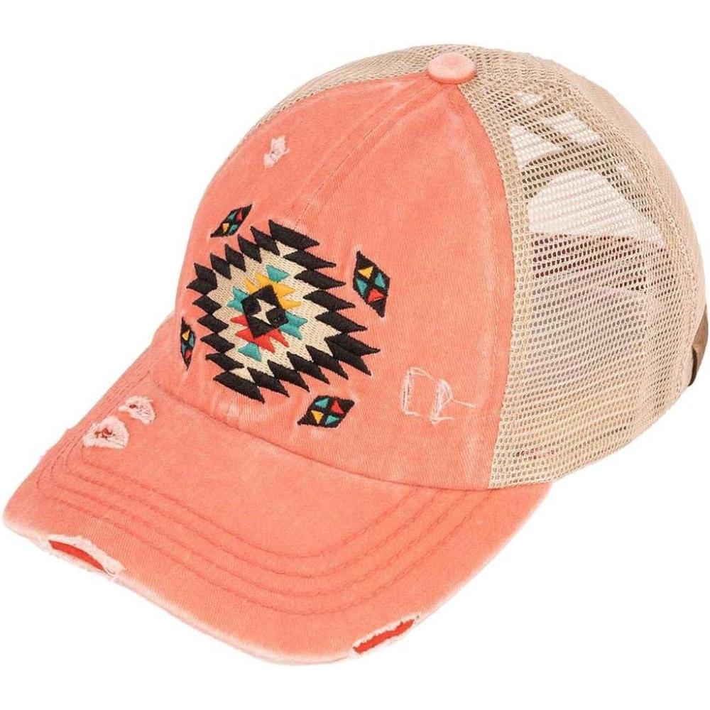 C.C Ponycap Messy High Bun Ponytail Adjustable Mesh Trucker Baseball Cap Hat(Aztec Coral)