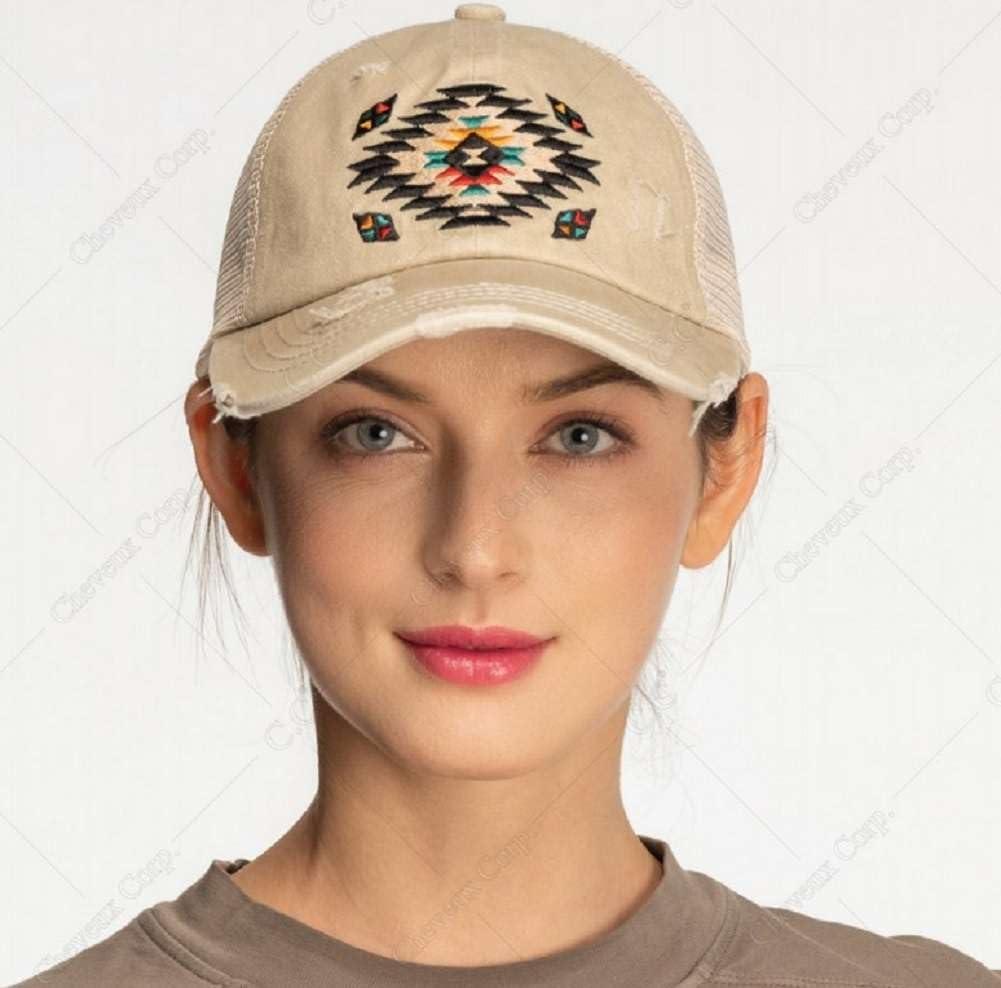 C.C Ponycap Messy High Bun Ponytail Adjustable Mesh Trucker Baseball Cap Hat(Aztec Turquoise)
