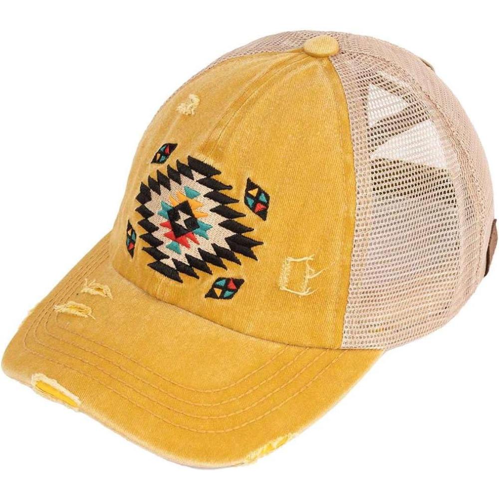 imageCC Ponycap Messy High Bun Ponytail Adjustable Mesh Trucker Baseball Cap HatAztec Mustard