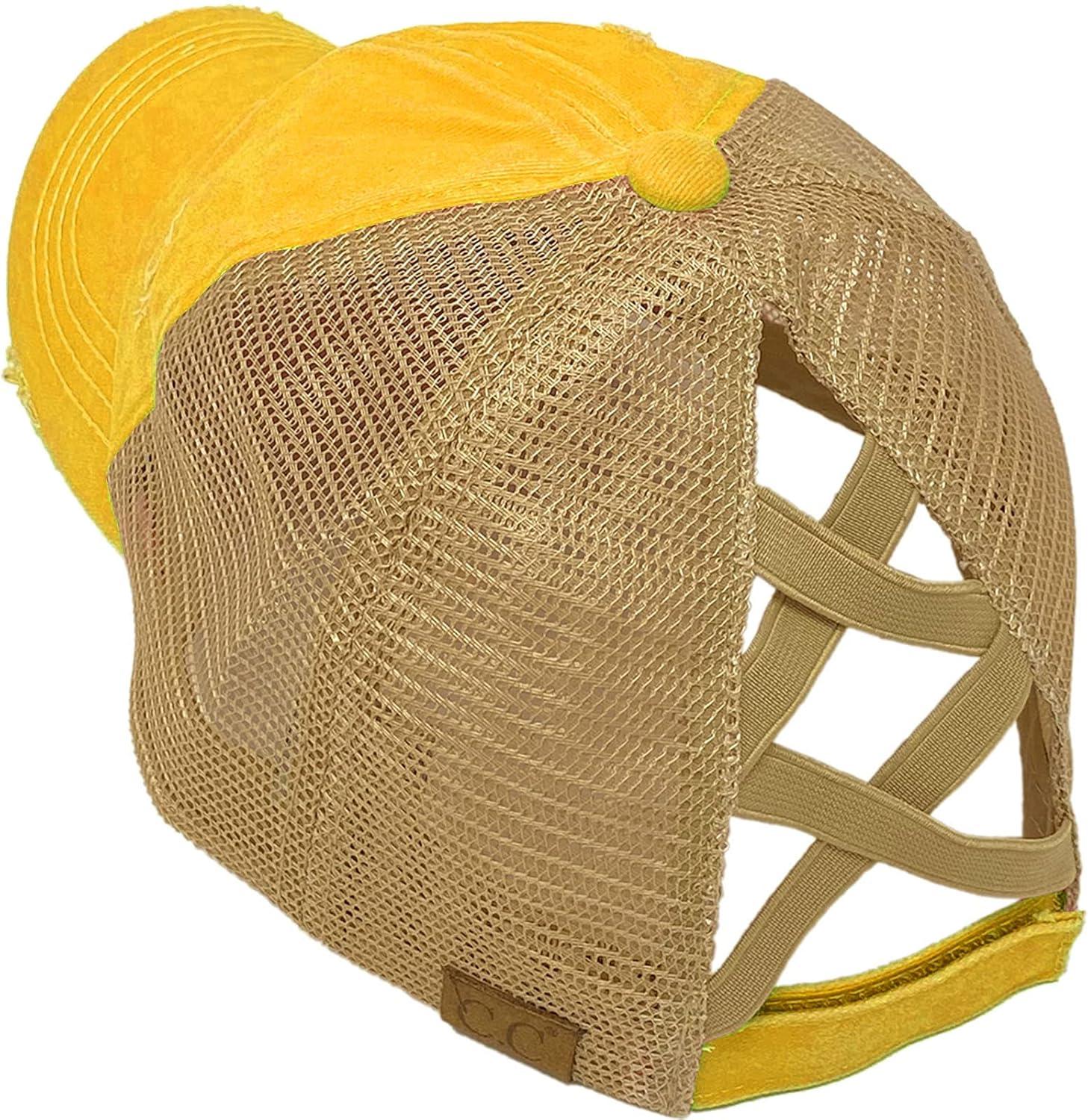 C.C Ponycap Messy High Bun Ponytail Adjustable Mesh Trucker Baseball Cap Hat(Bee Happy Yellow)
