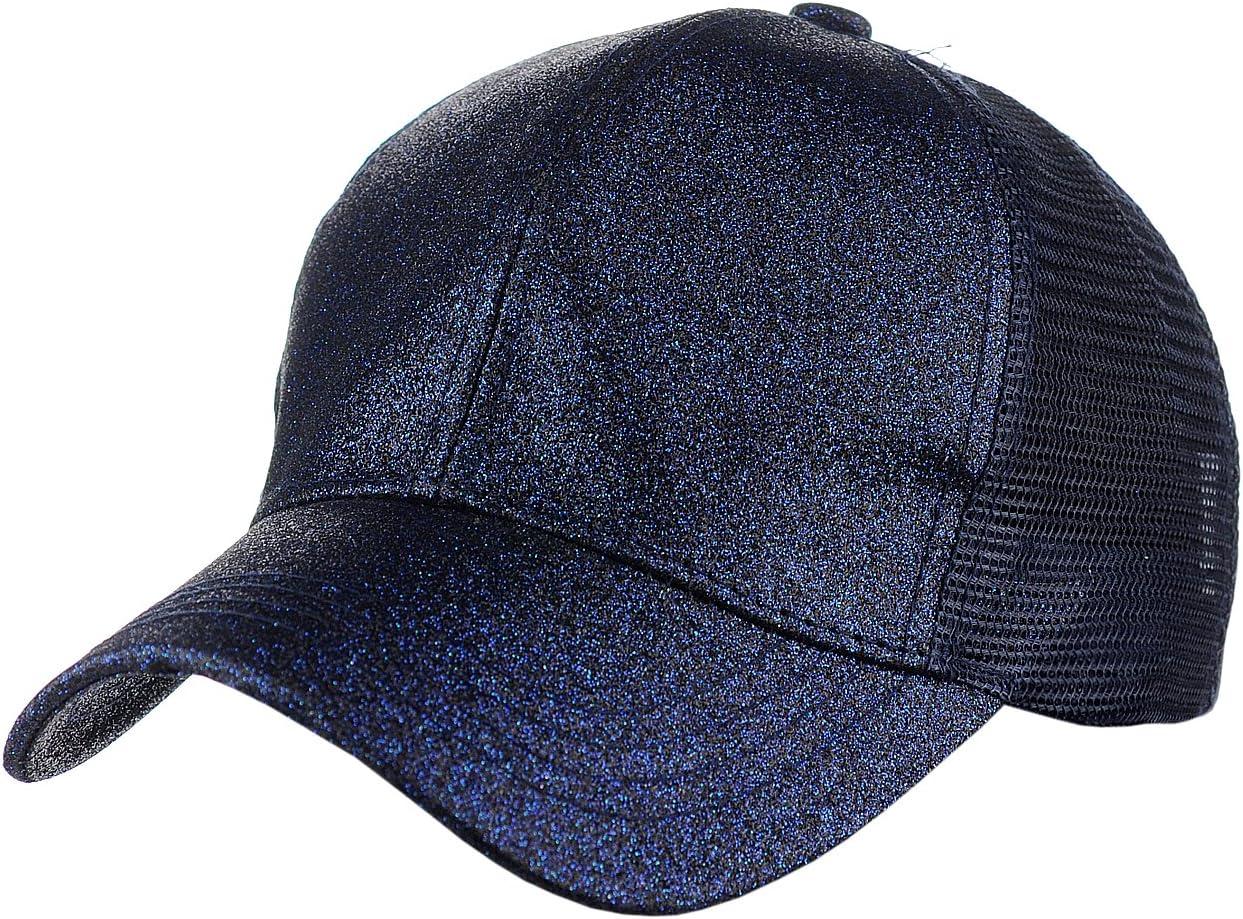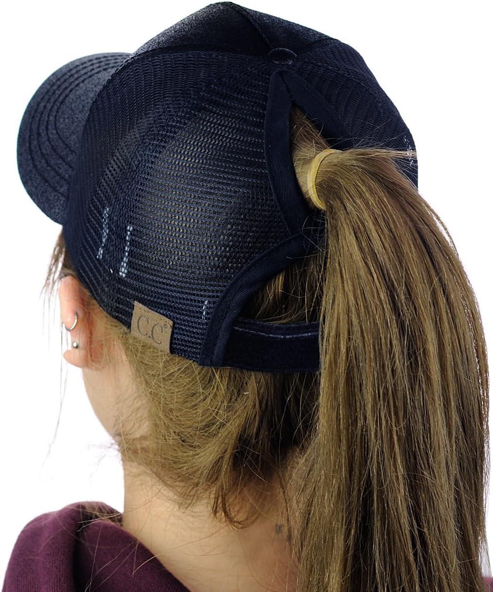 C.C Ponycap Messy High Bun Ponytail Adjustable Mesh Trucker Baseball Cap Hat(Blue)