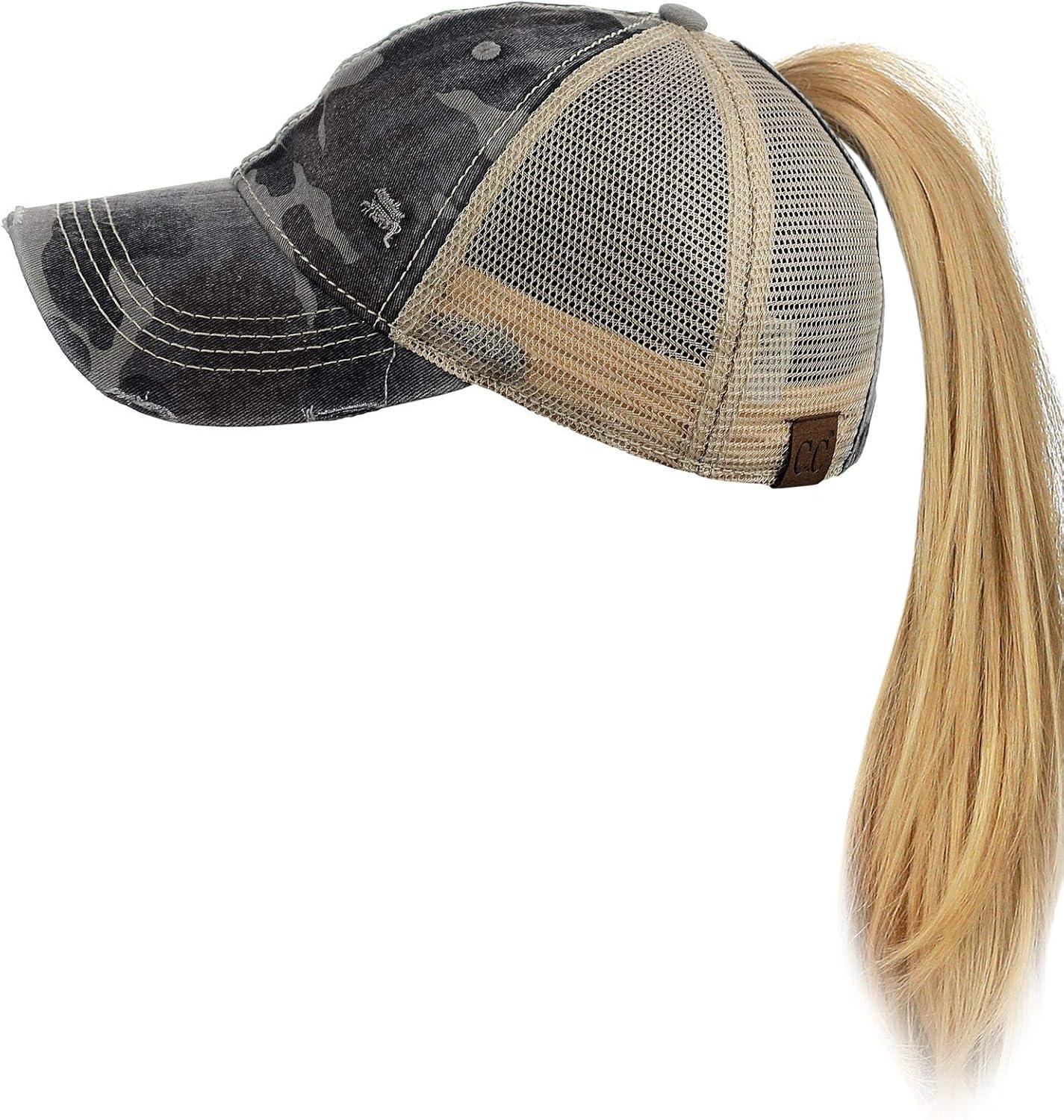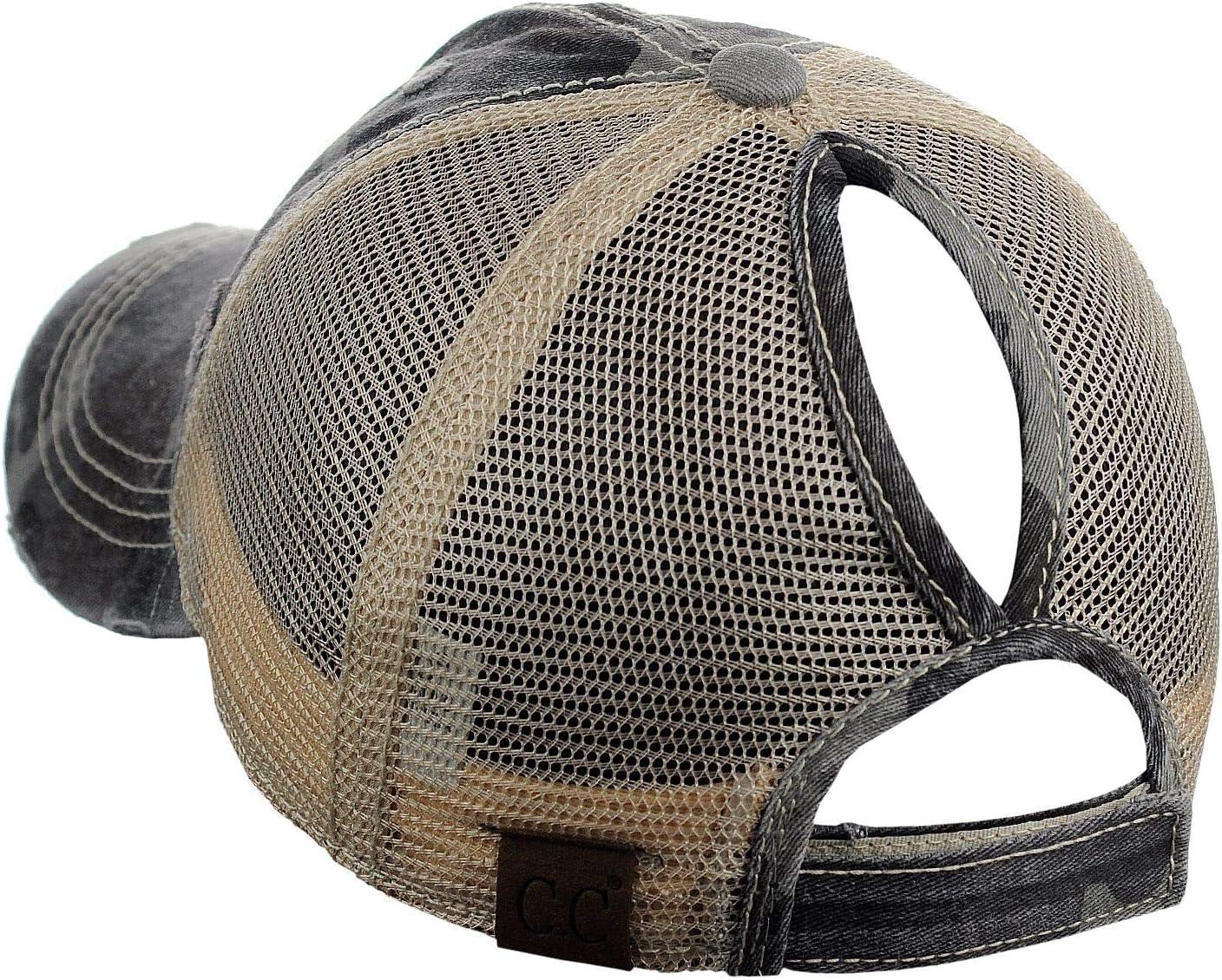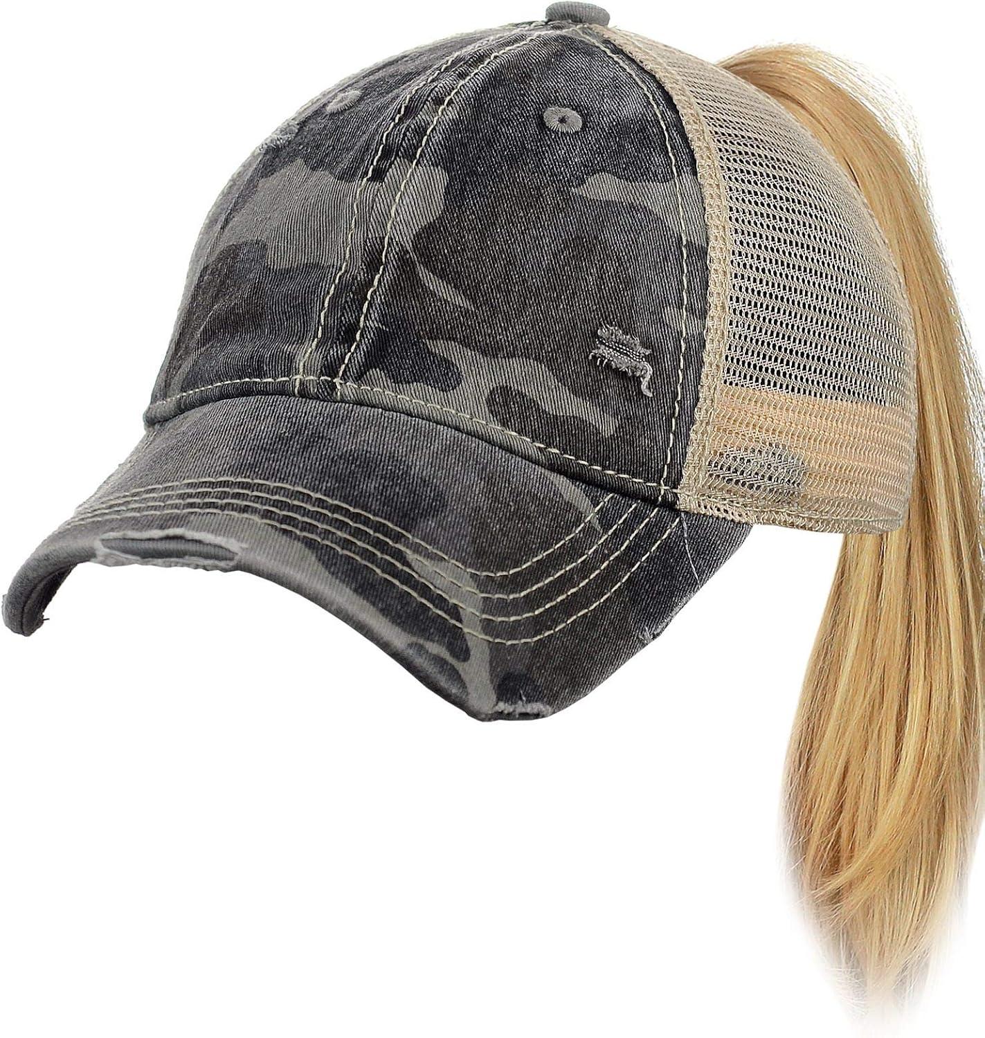 C.C Ponycap Messy High Bun Ponytail Adjustable Mesh Trucker Baseball Cap Hat(Camo Grey)