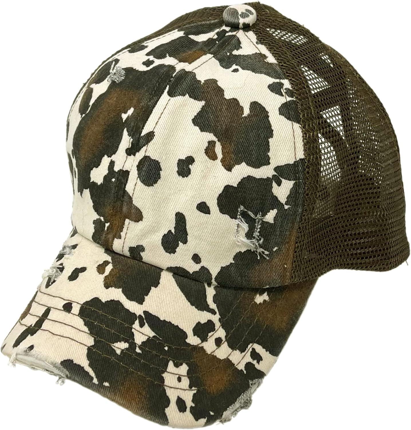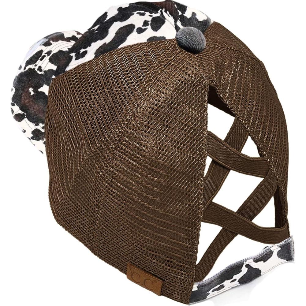 C.C Ponycap Messy High Bun Ponytail Adjustable Mesh Trucker Baseball Cap Hat(Criss Cross Cow Brown)