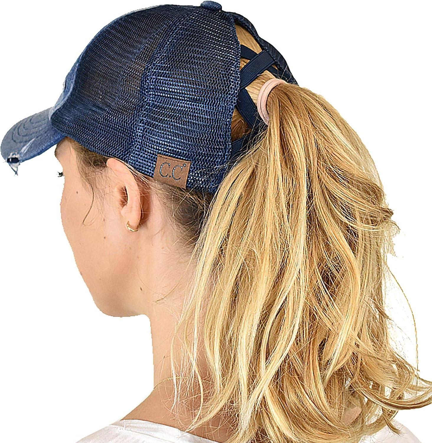 imageCC Ponycap Messy High Bun Ponytail Adjustable Mesh Trucker Baseball Cap HatCriss Cross Mesh Denim
