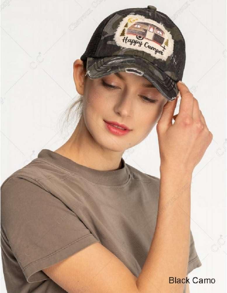 imageCC Ponycap Messy High Bun Ponytail Adjustable Mesh Trucker Baseball Cap HatCriss Cross Patch Happy Camper  Black Camo