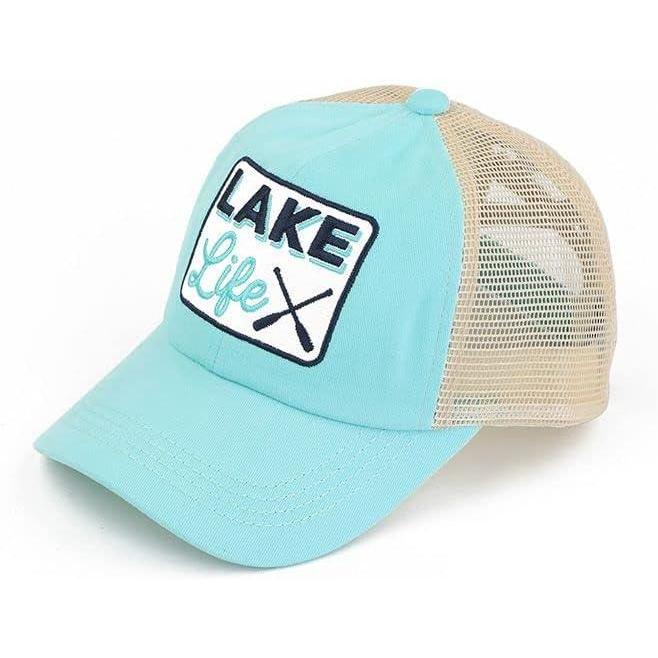 C.C Ponycap Messy High Bun Ponytail Adjustable Mesh Trucker Baseball Cap Hat(Criss Cross Patch Lake Life Mint)