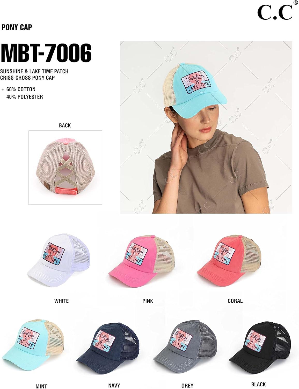 C.C Ponycap Messy High Bun Ponytail Adjustable Mesh Trucker Baseball Cap Hat(Criss Cross Patch Lake Time Pink)