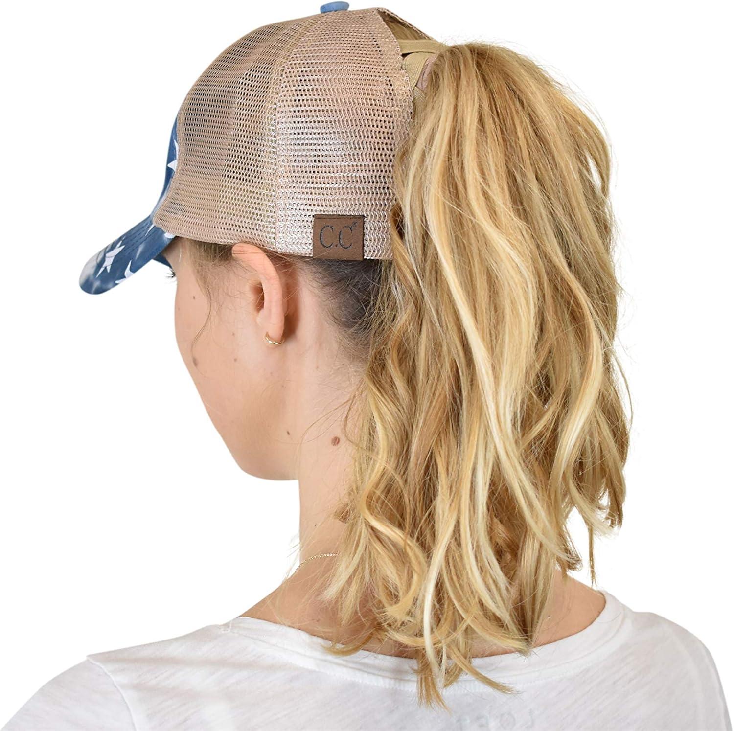 imageCC Ponycap Messy High Bun Ponytail Adjustable Mesh Trucker Baseball Cap HatCriss Cross Stars and Flag  Purple