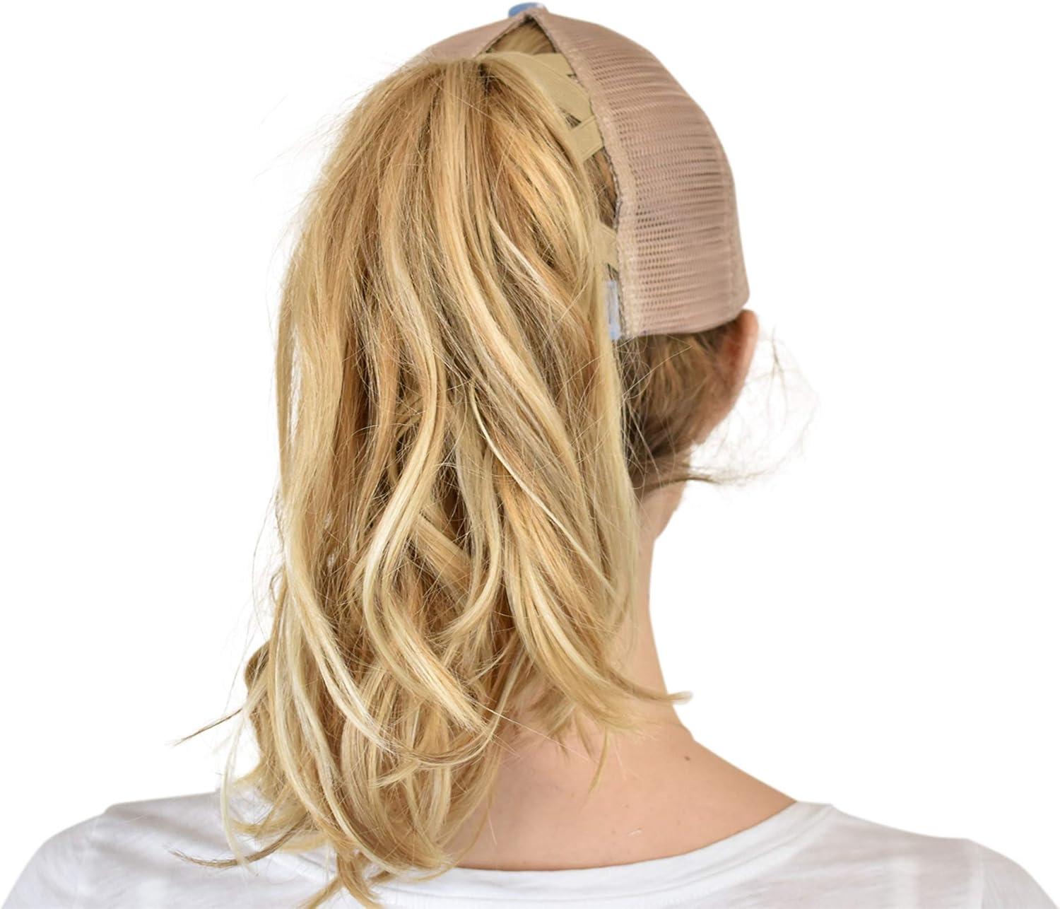 imageCC Ponycap Messy High Bun Ponytail Adjustable Mesh Trucker Baseball Cap HatCriss Cross Stars and Flag  Hot Pink