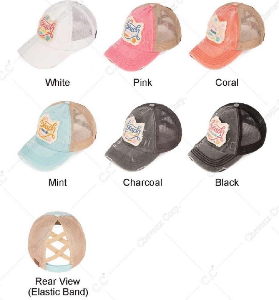 imageCC Ponycap Messy High Bun Ponytail Adjustable Mesh Trucker Baseball Cap HatDistressed Beach Please  Pink
