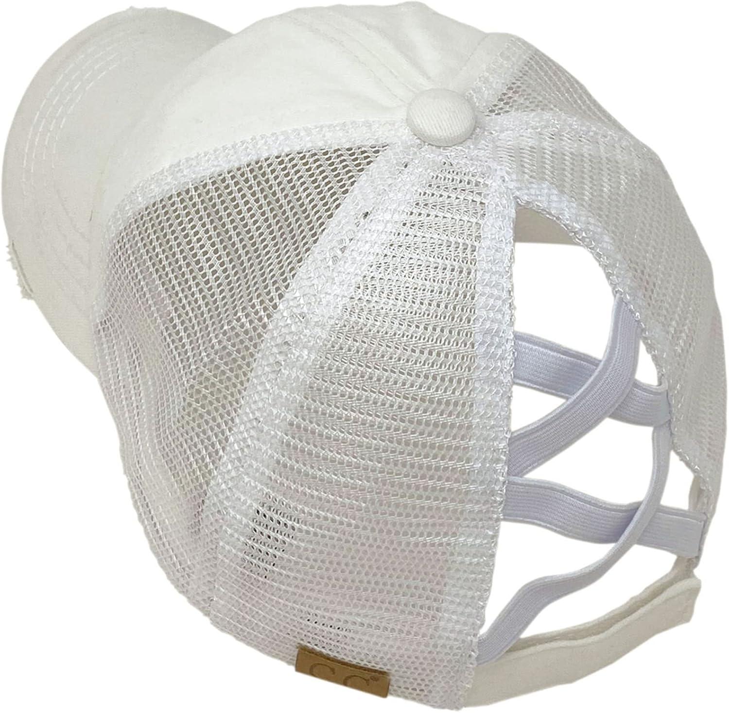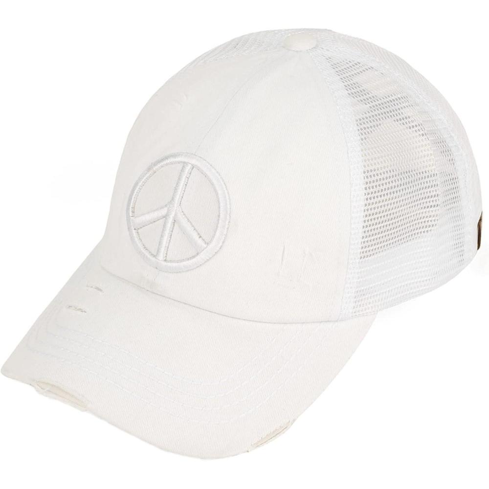 C.C Ponycap Messy High Bun Ponytail Adjustable Mesh Trucker Baseball Cap Hat(Distressed Peace Sign White)