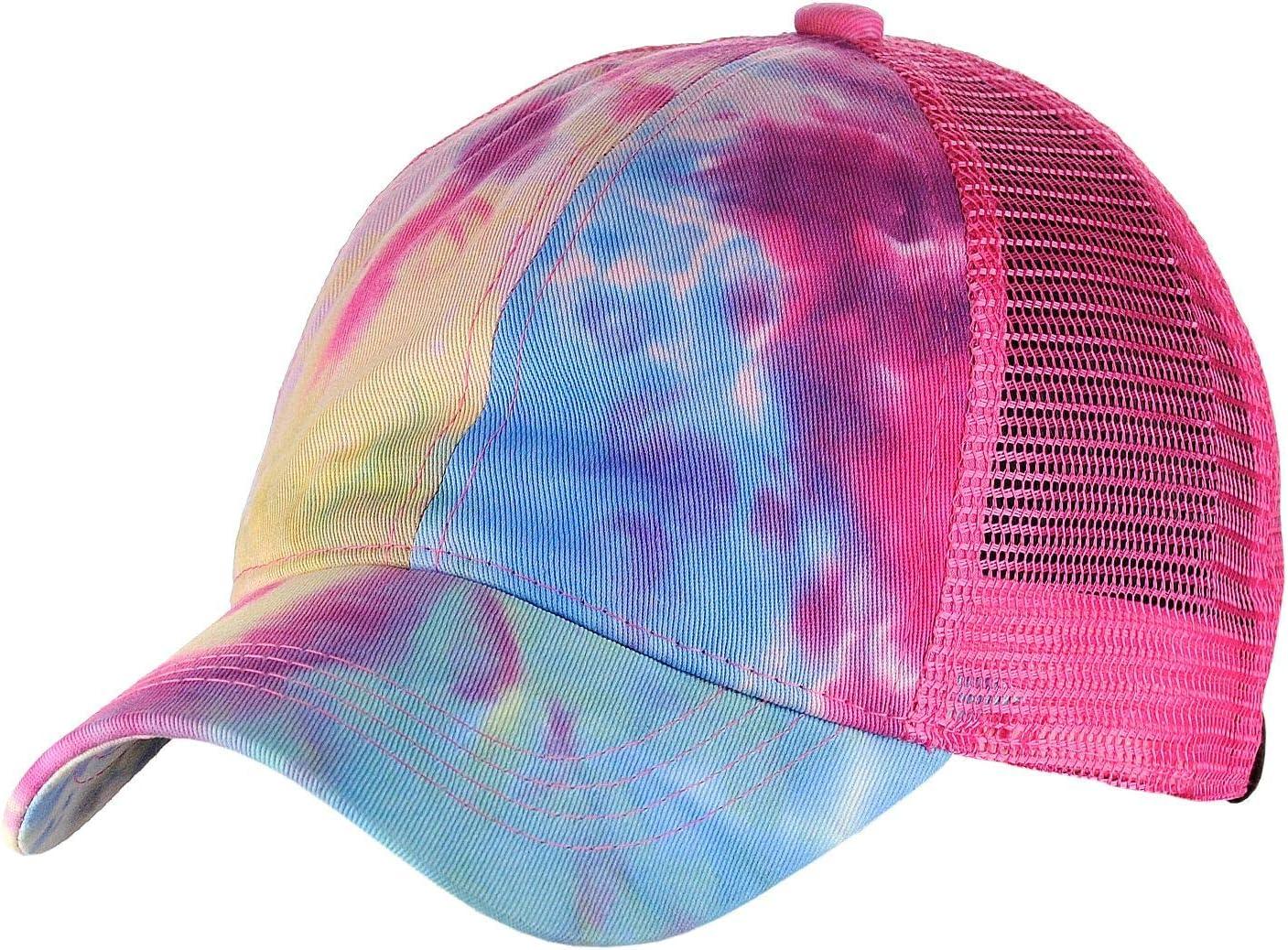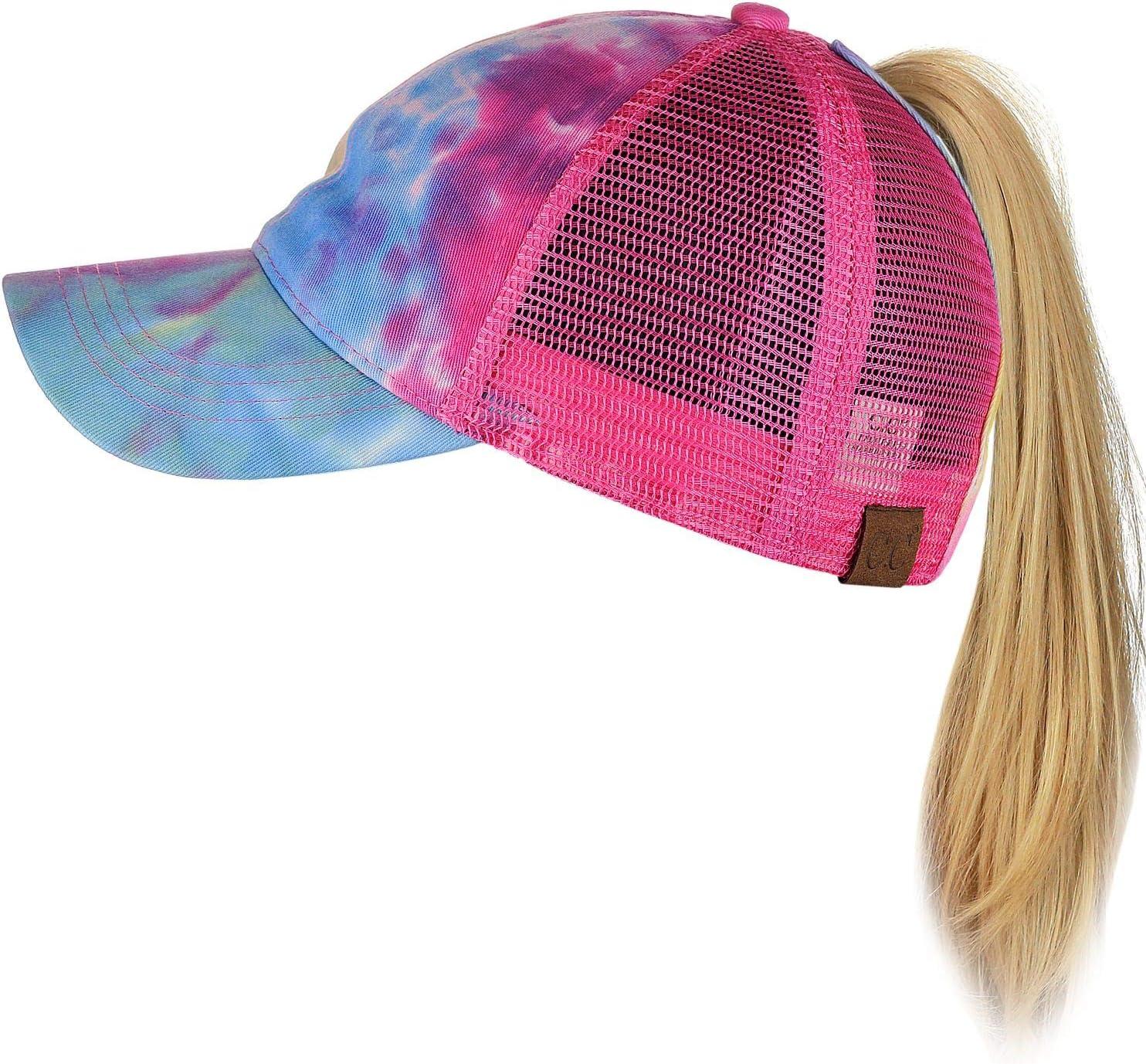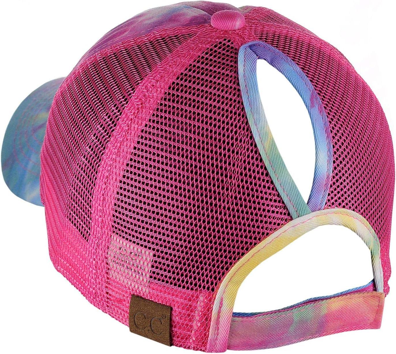 C.C Ponycap Messy High Bun Ponytail Adjustable Mesh Trucker Baseball Cap Hat(Dye Hot Pink)