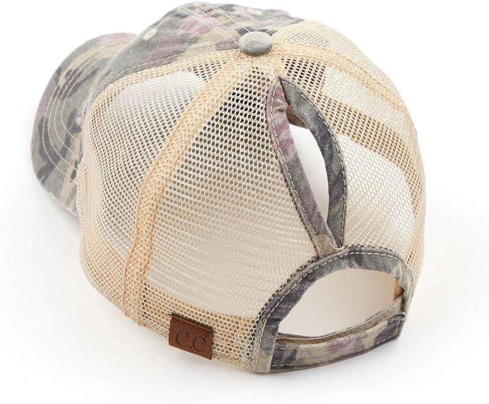 C.C Ponycap Messy High Bun Ponytail Adjustable Mesh Trucker Baseball Cap Hat(Floral Camo Beige)
