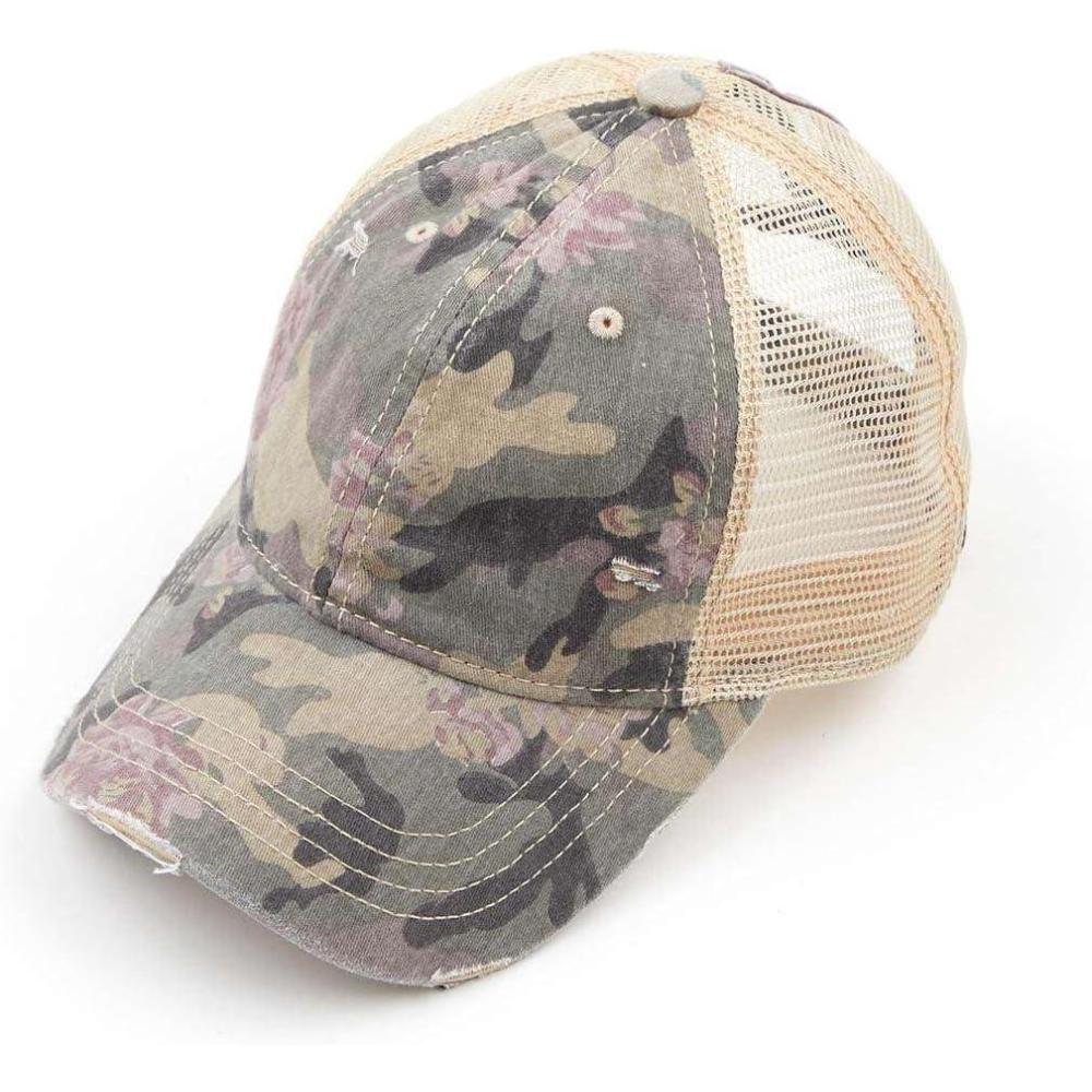 imageCC Ponycap Messy High Bun Ponytail Adjustable Mesh Trucker Baseball Cap HatFloral Camo Beige