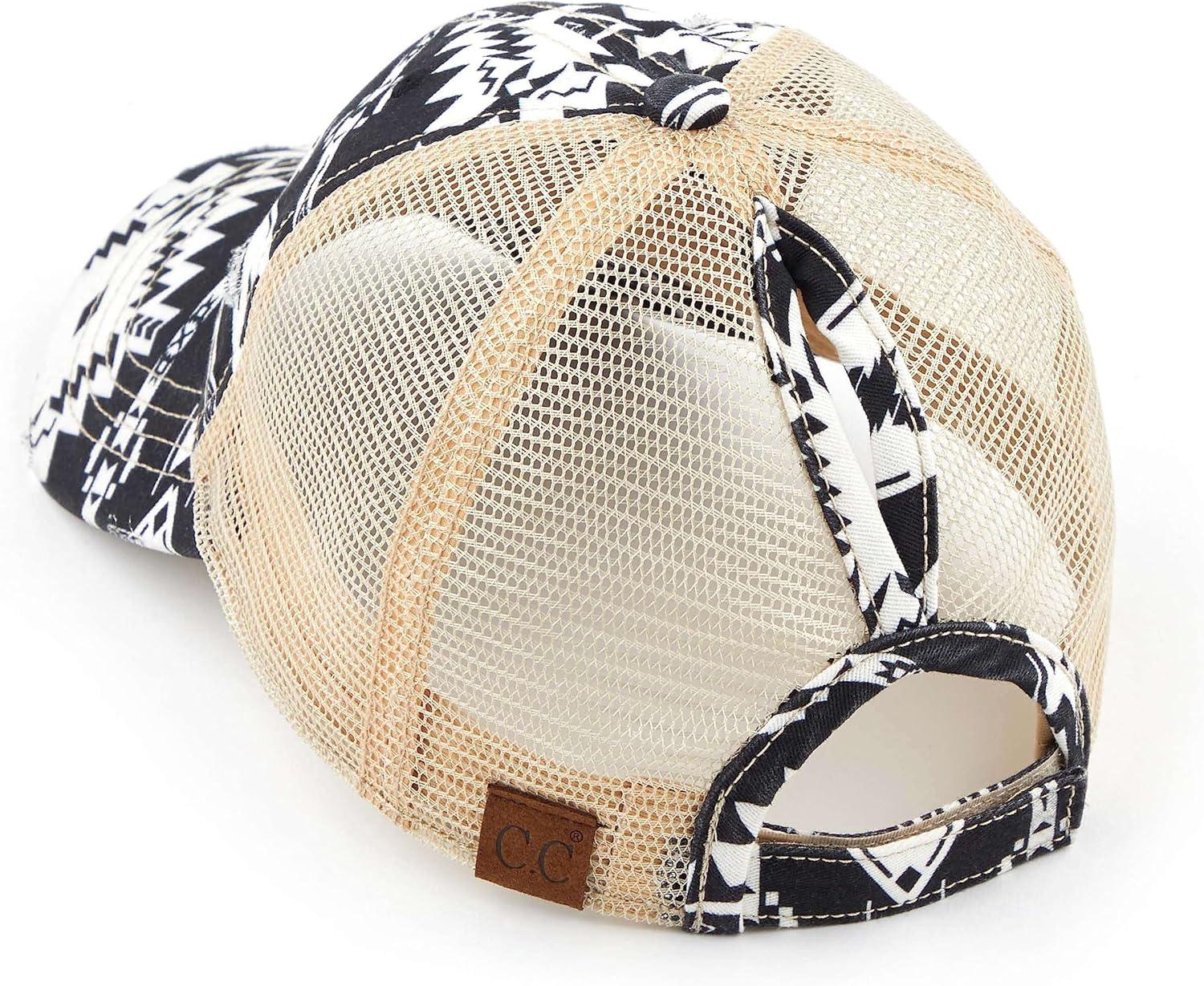 C.C Ponycap Messy High Bun Ponytail Adjustable Mesh Trucker Baseball Cap Hat(Full Aztec Ivory)