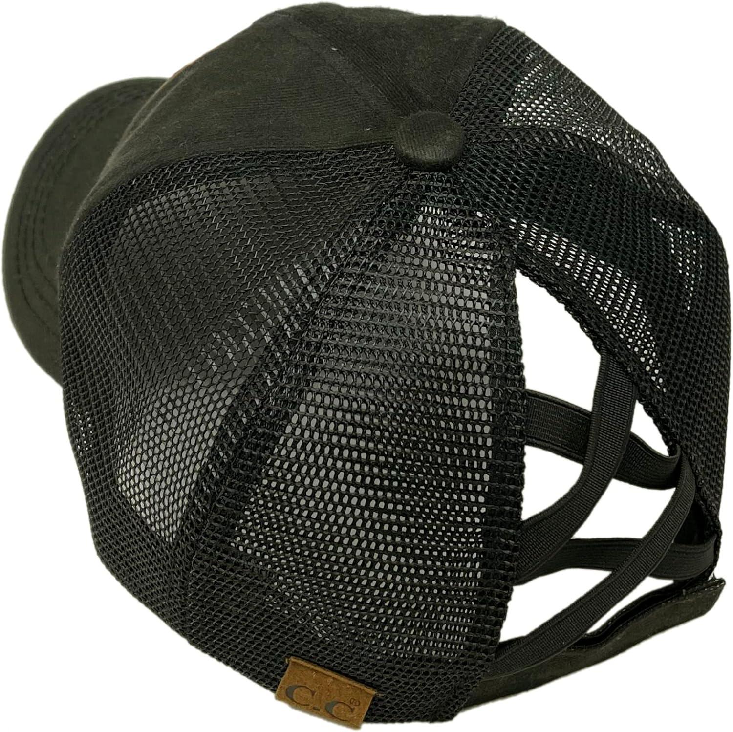 C.C Ponycap Messy High Bun Ponytail Adjustable Mesh Trucker Baseball Cap Hat(Patch Runs on Coffee Black)