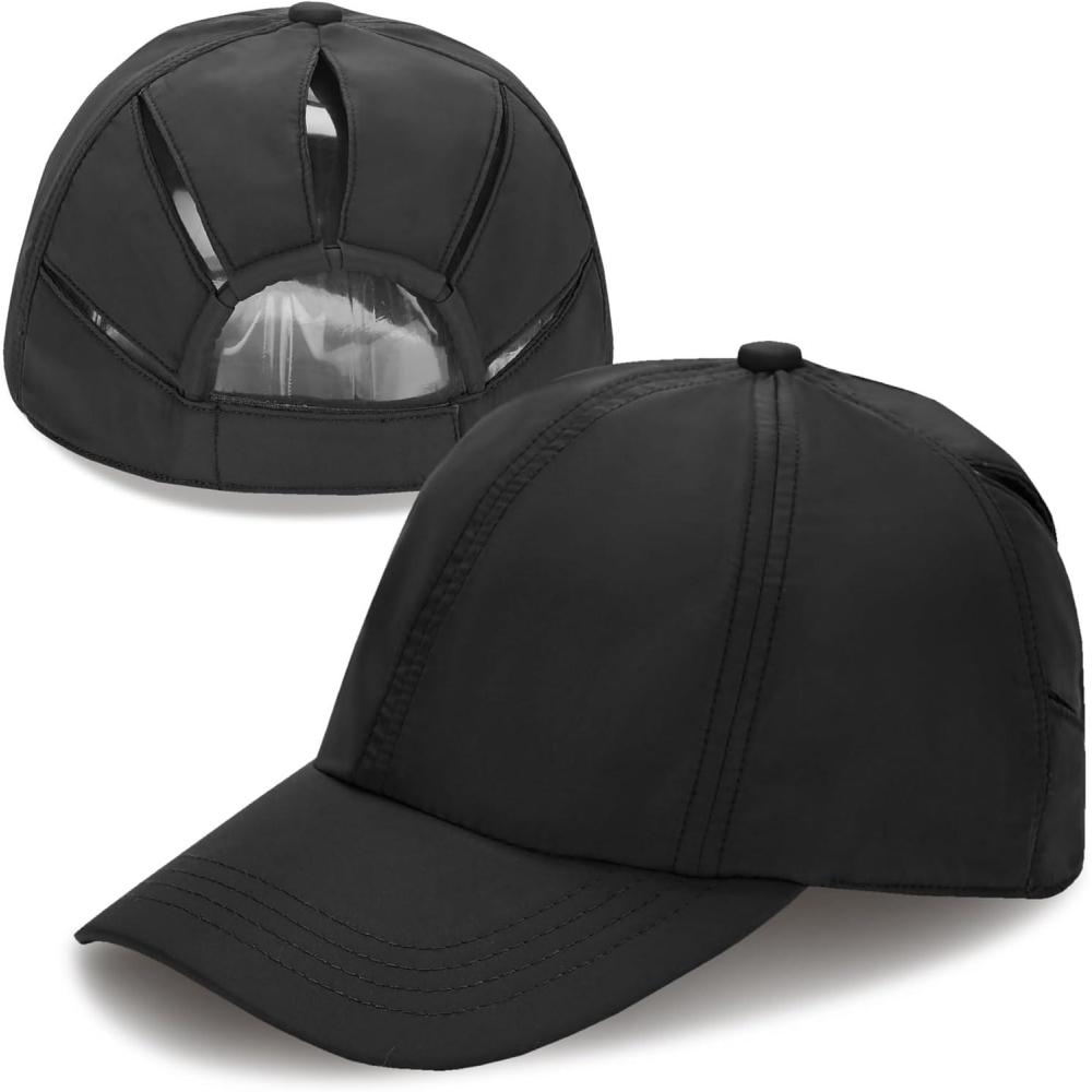 C.C Ponycap Messy High Bun Ponytail Adjustable Trucker Baseball Cap Hat(Black)
