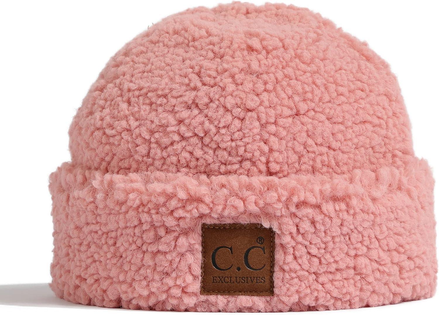 C.C Knit Beanie Hat – Fuzzy Fleece Lined Warm Winter Hat for Women, Soft Stretchy Slouchy Knit Cap, Cold Weather Beanie(Beige)