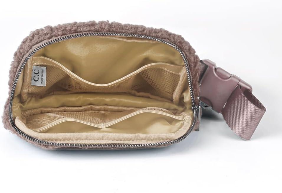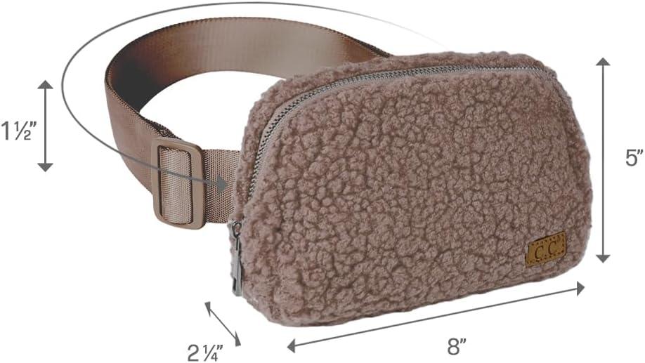 C.C Sherpa Fanny Pack For Women Unisex - Fuzzy Daily Waist Crossbody Belt bag With Adjustable Strap (Teal)(Sherpa-Taupe)