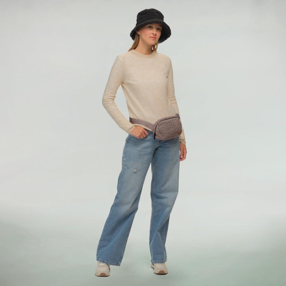 C.C Sherpa Fanny Pack For Women Unisex – Fuzzy Daily Waist Crossbody Belt bag With Adjustable Strap (Teal)(Sherpa-Taupe)