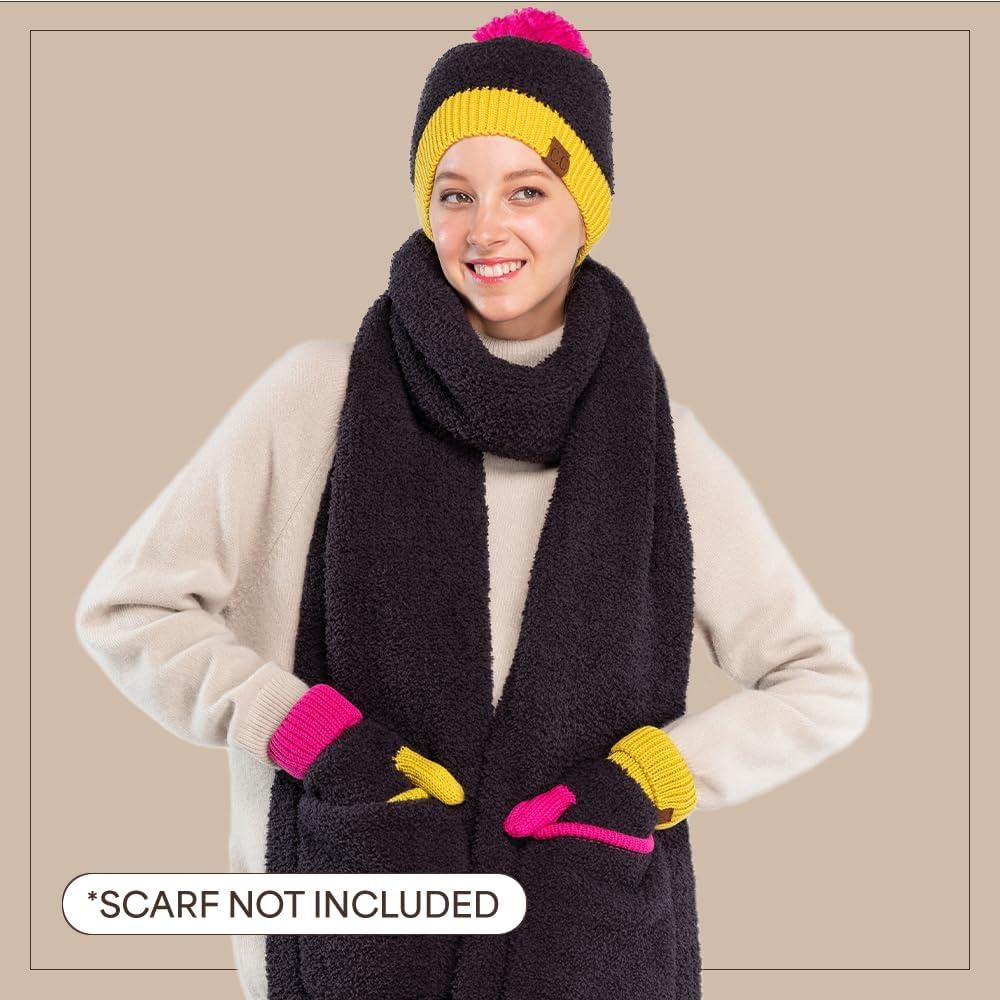 Get a free gift with your purchase of C.C Sherpa Fleece Knit Beanie and Mittens Set, Winter Accessories for Women, Soft Stretchy(Black Multi). Limited quantities available!