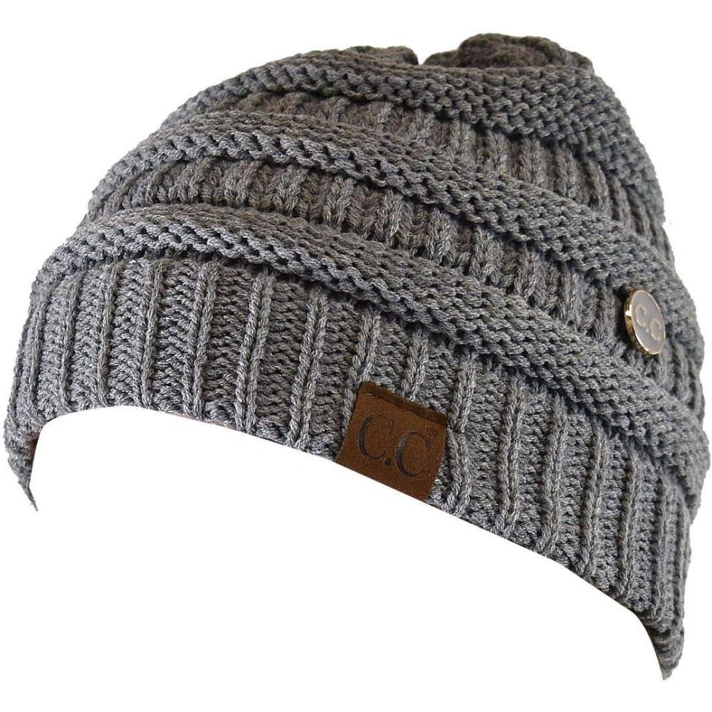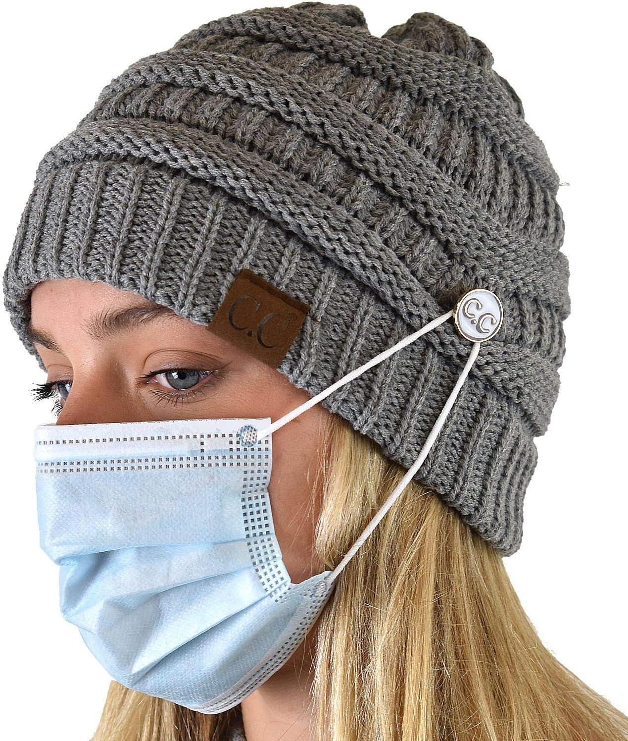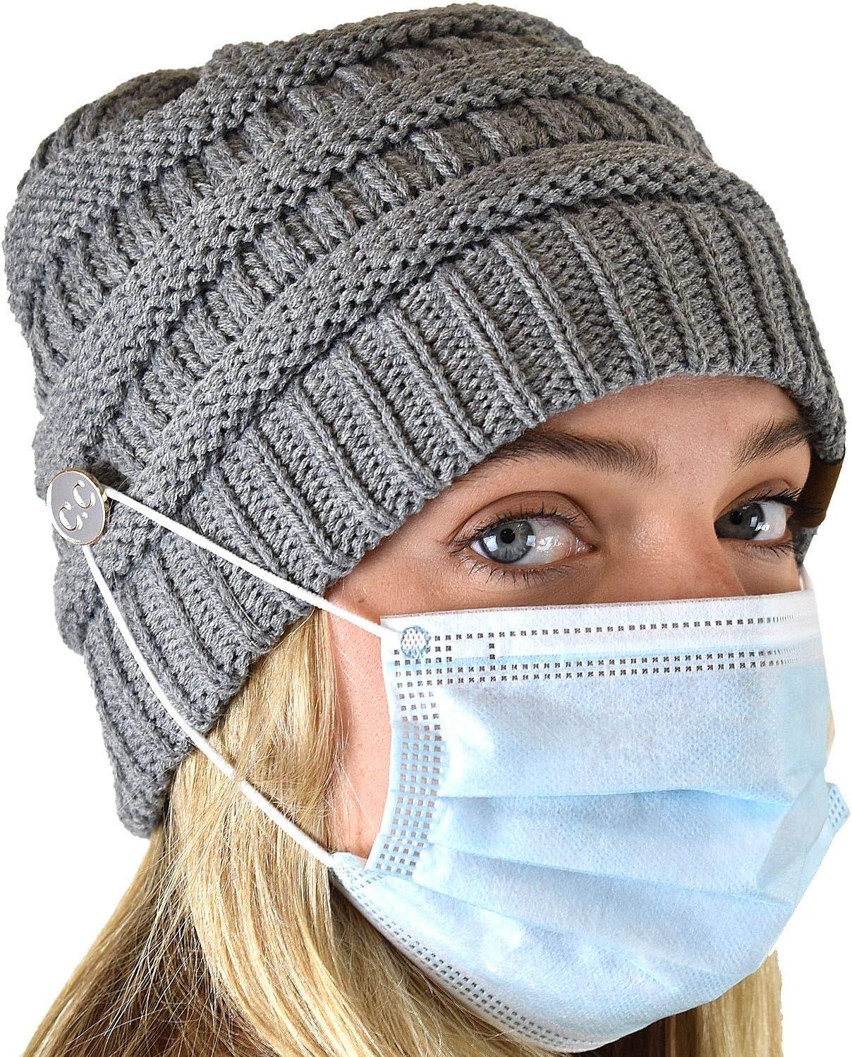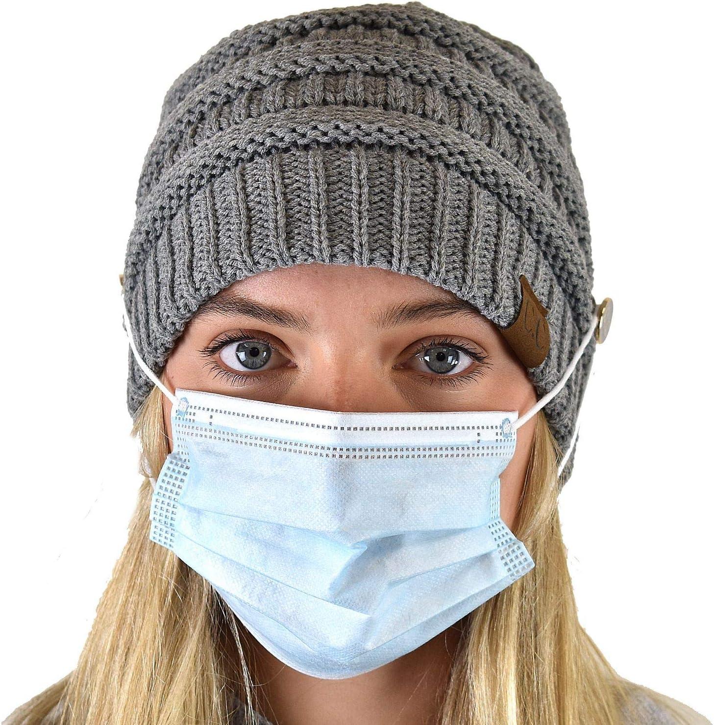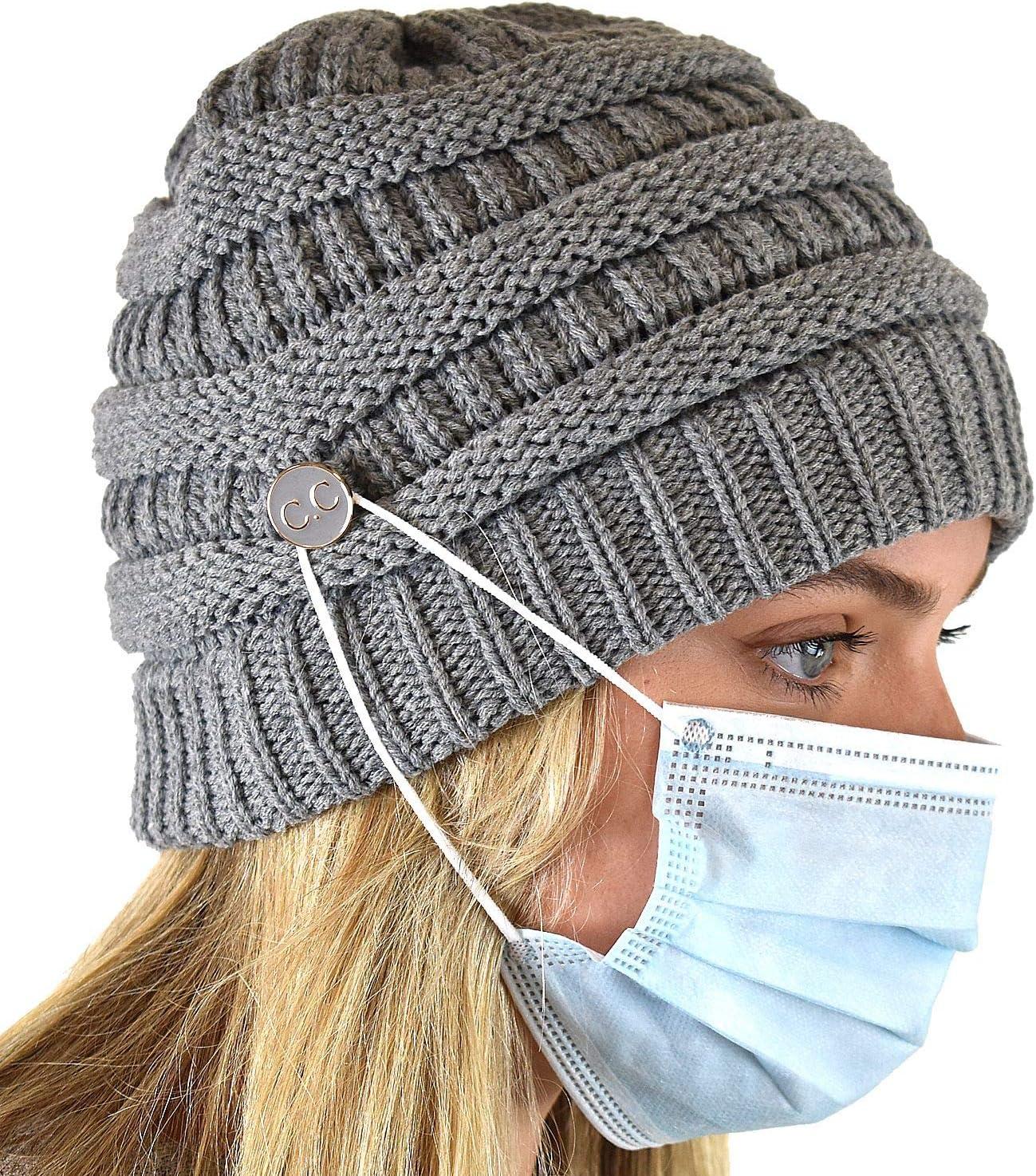 C.C Soft Stretch Cable Knit Side Epoxy Button for Mask Beanie Skully(Light Melange Gray)