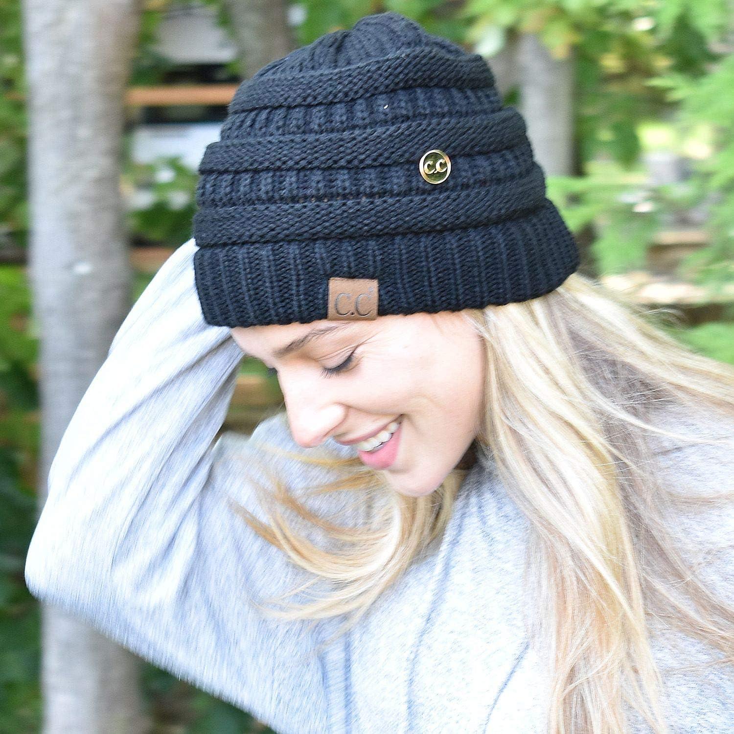 C.C Soft Stretch Cable Knit Side Epoxy Button for Mask Beanie Skully(Maroon)