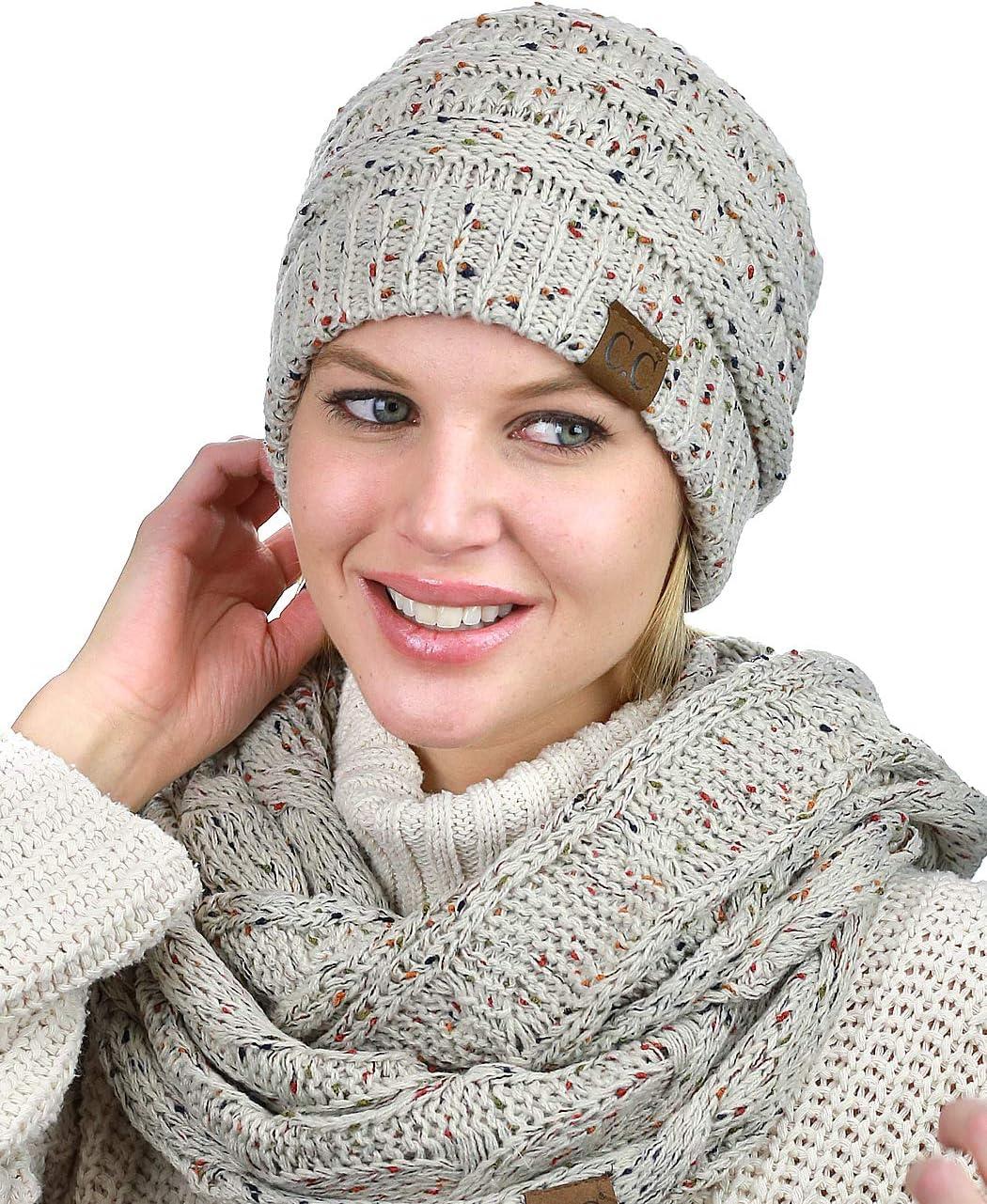 C.C Soft Stretch Colorful Confetti Cable Knit Beanie and Infinity Loop Scarf Set(Oatmeal)
