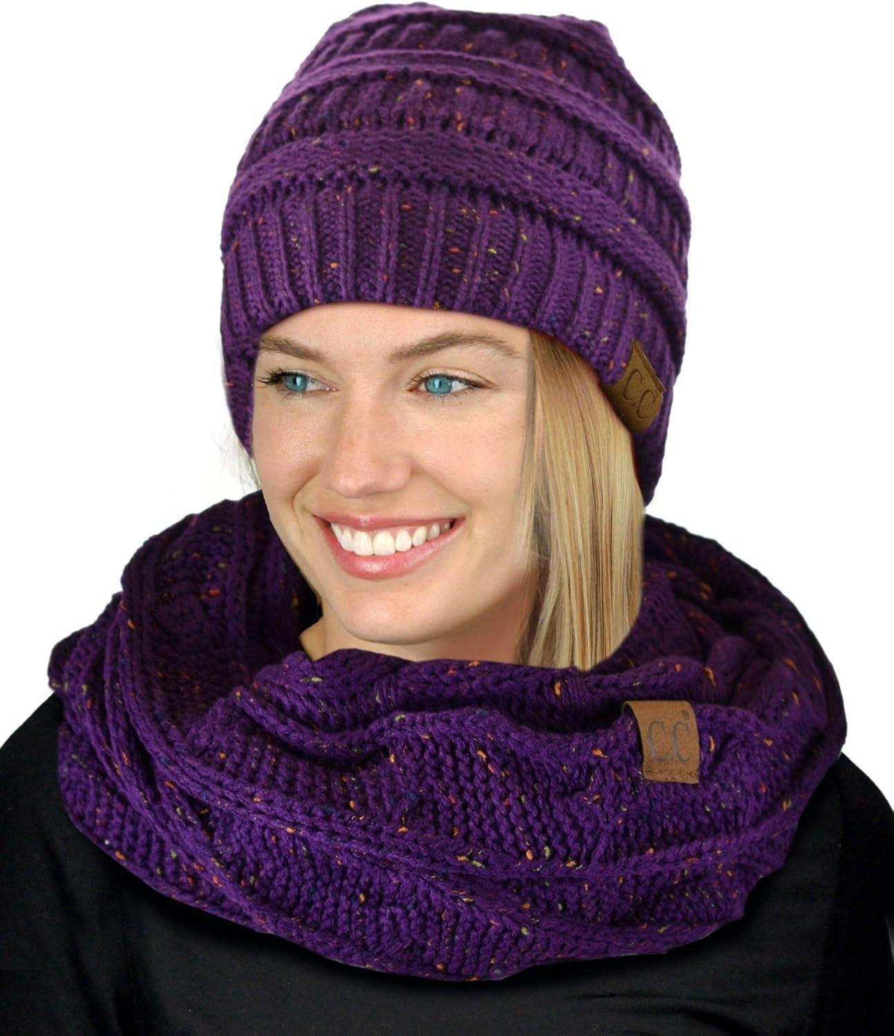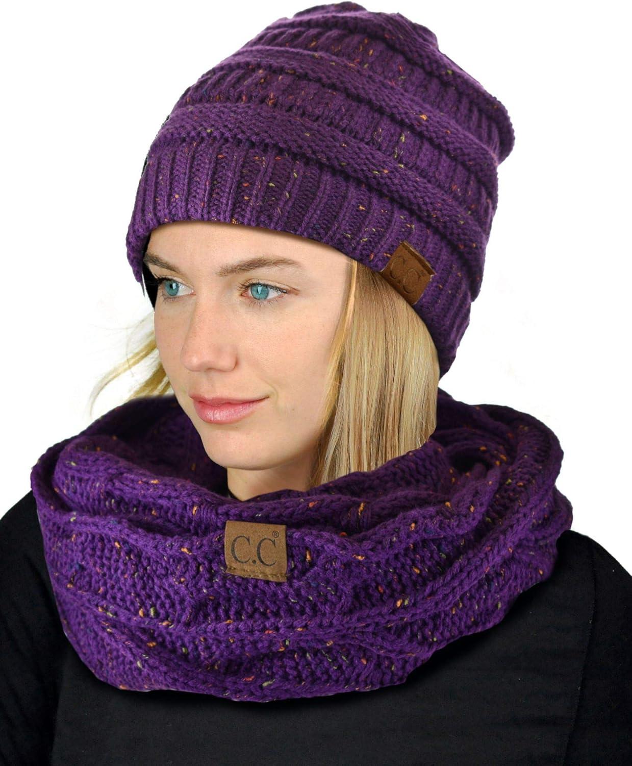 C.C Soft Stretch Colorful Confetti Cable Knit Beanie and Infinity Loop Scarf Set(Purple)
