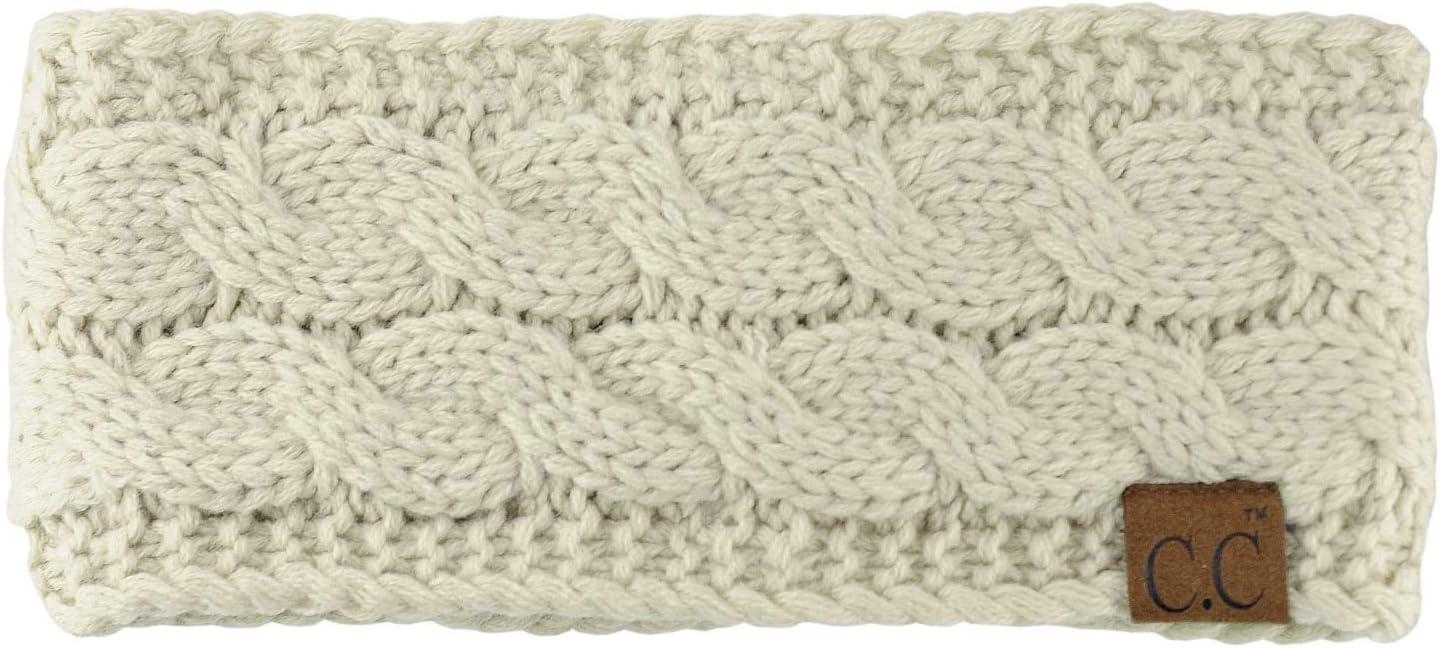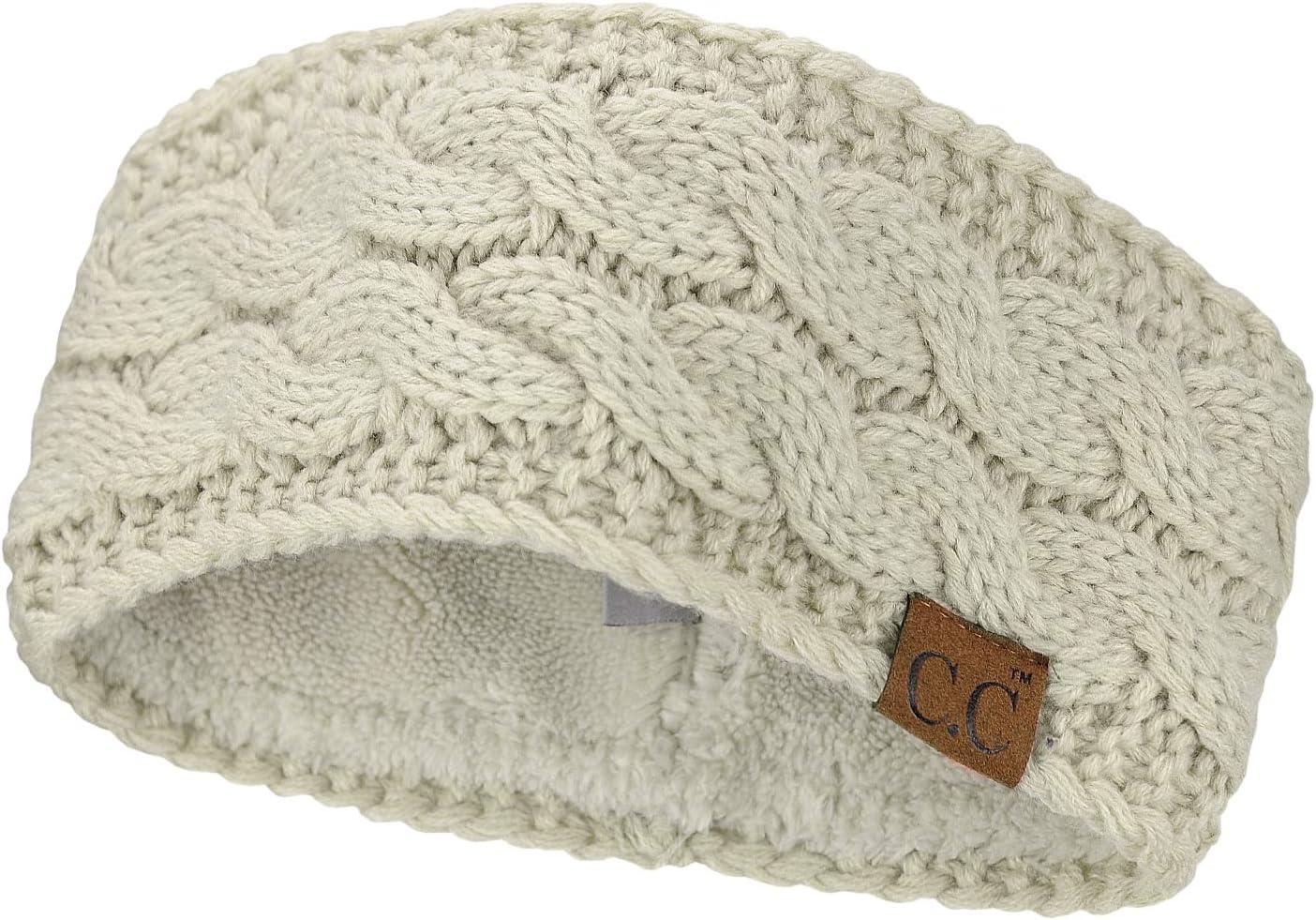 C.C Soft Stretch Winter Warm Cable Knit Fuzzy Lined Ear Warmer Headband(Beige)