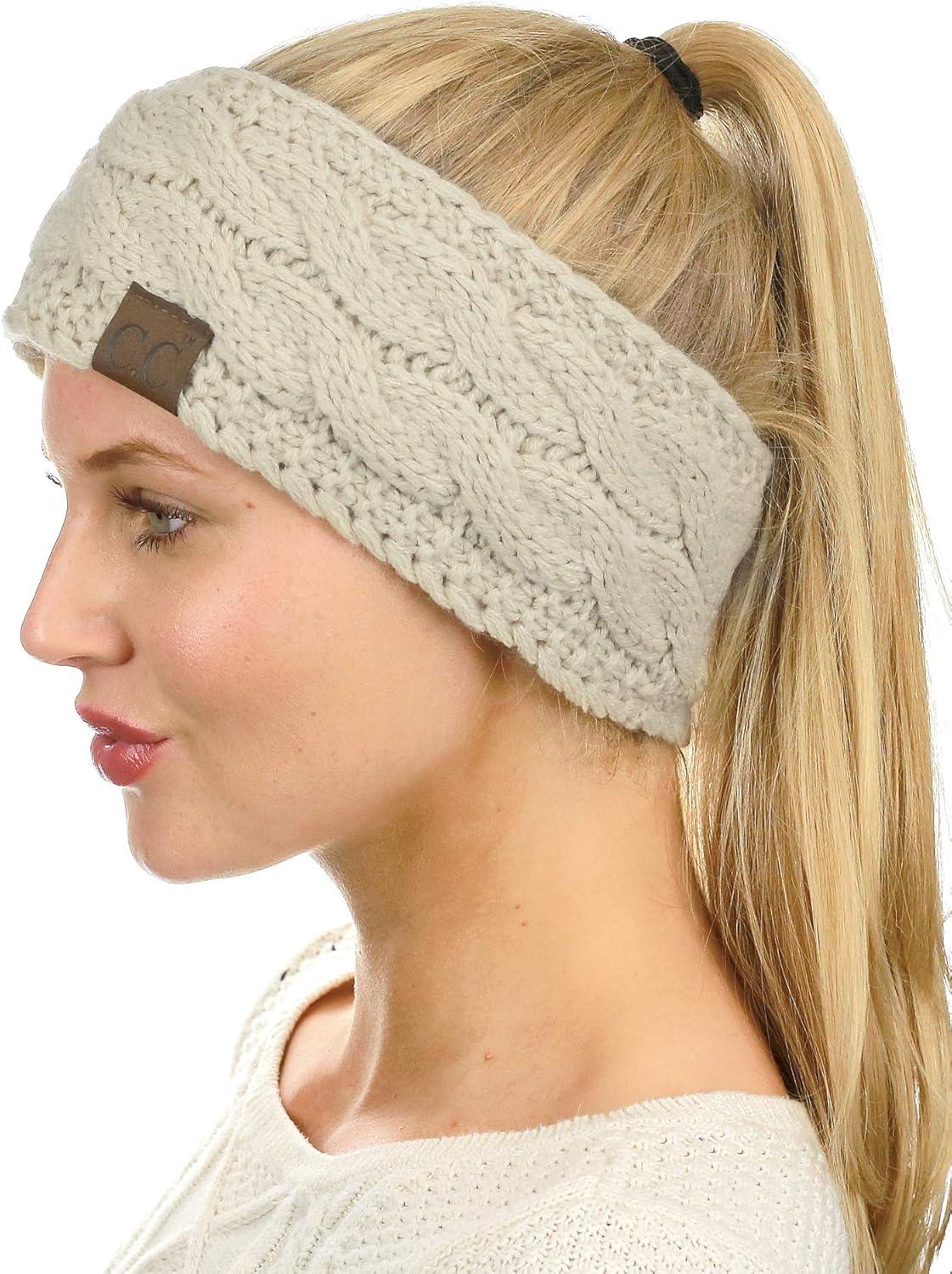 imageCC Soft Stretch Winter Warm Cable Knit Fuzzy Lined Ear Warmer HeadbandBeige