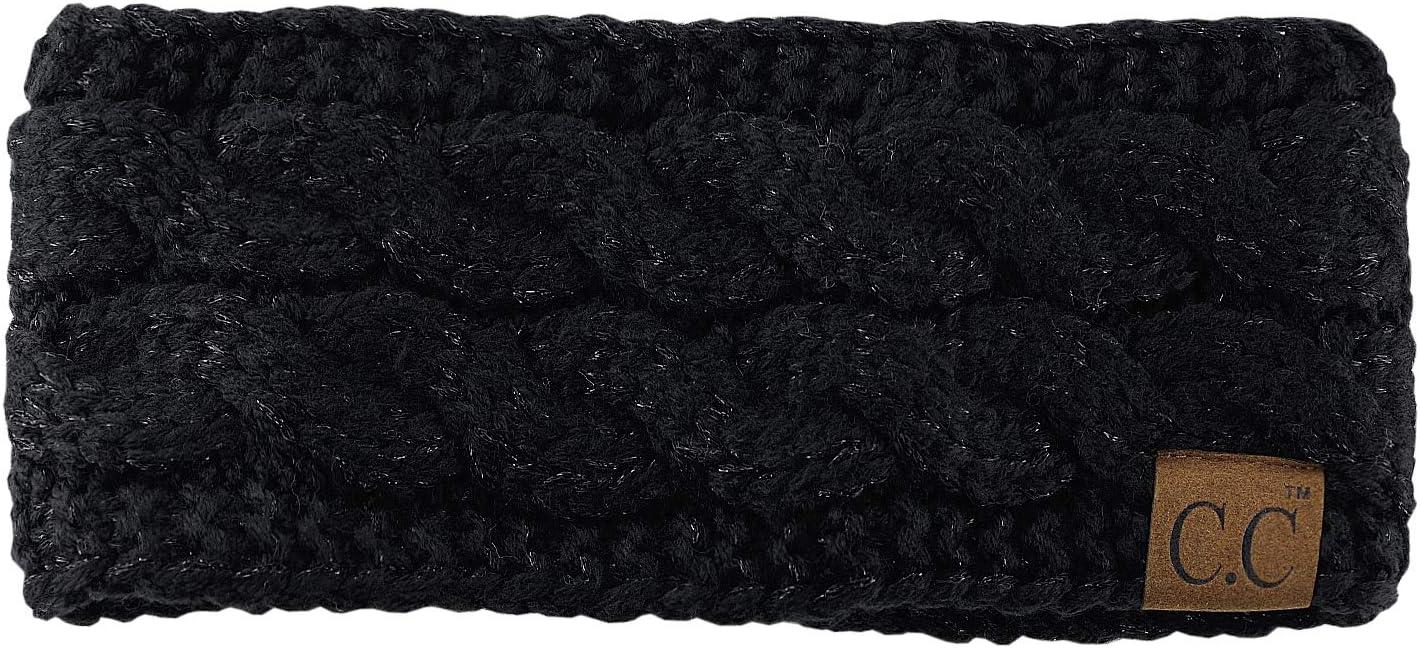 C.C Soft Stretch Winter Warm Cable Knit Fuzzy Lined Ear Warmer Headband(Black Metallic)