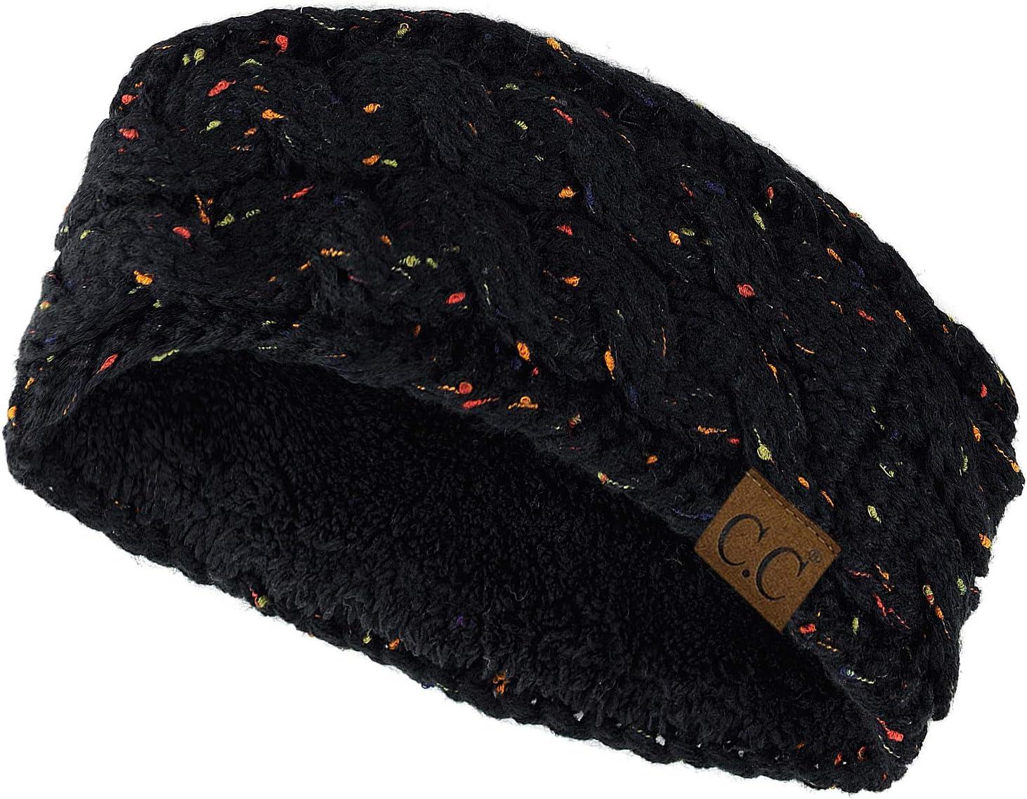 C.C Soft Stretch Winter Warm Cable Knit Fuzzy Lined Ear Warmer Headband(Confetti Black)