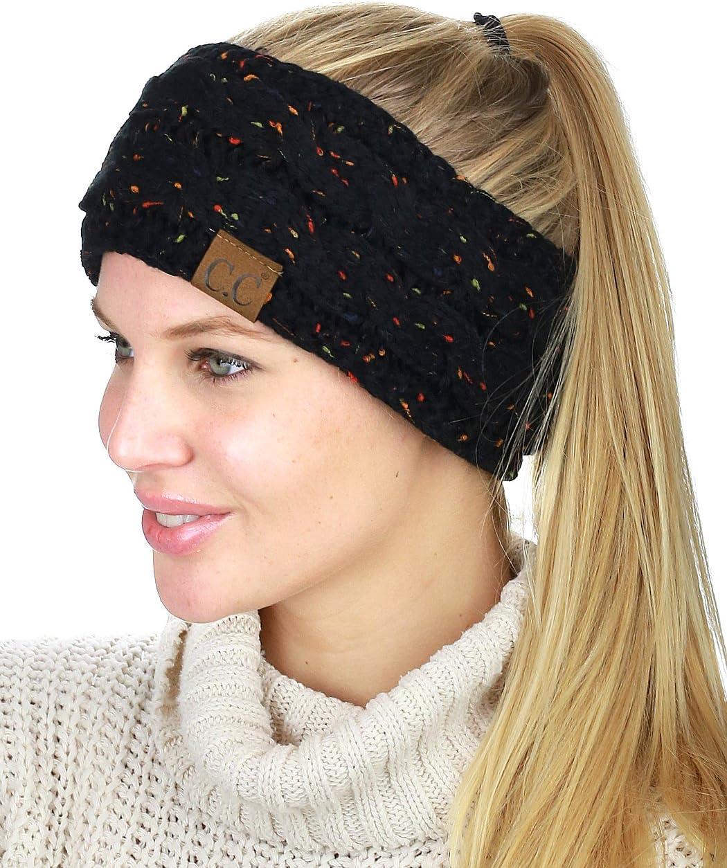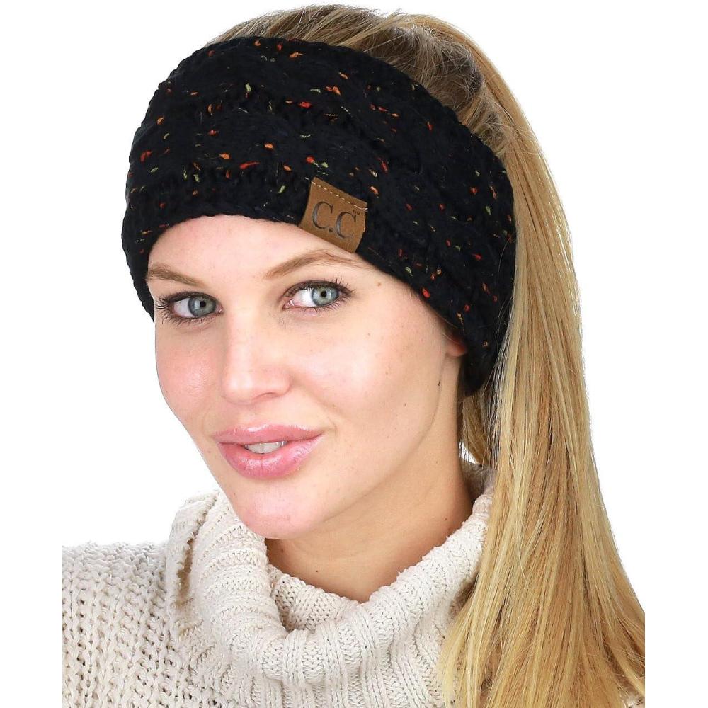 imageCC Soft Stretch Winter Warm Cable Knit Fuzzy Lined Ear Warmer HeadbandConfetti Black