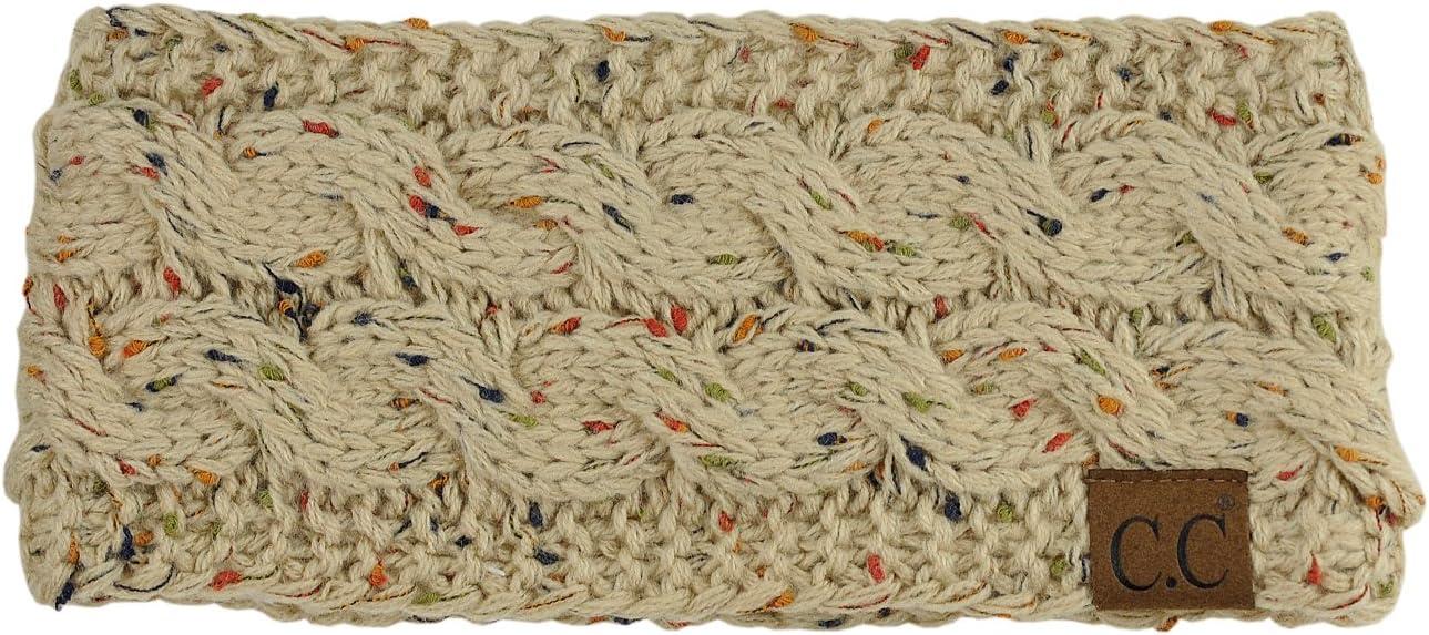 C.C Soft Stretch Winter Warm Cable Knit Fuzzy Lined Ear Warmer Headband(Confetti Latte)