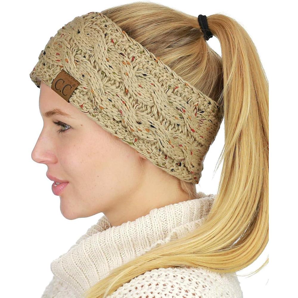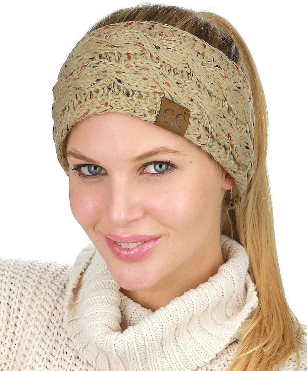 imageCC Soft Stretch Winter Warm Cable Knit Fuzzy Lined Ear Warmer HeadbandConfetti Latte