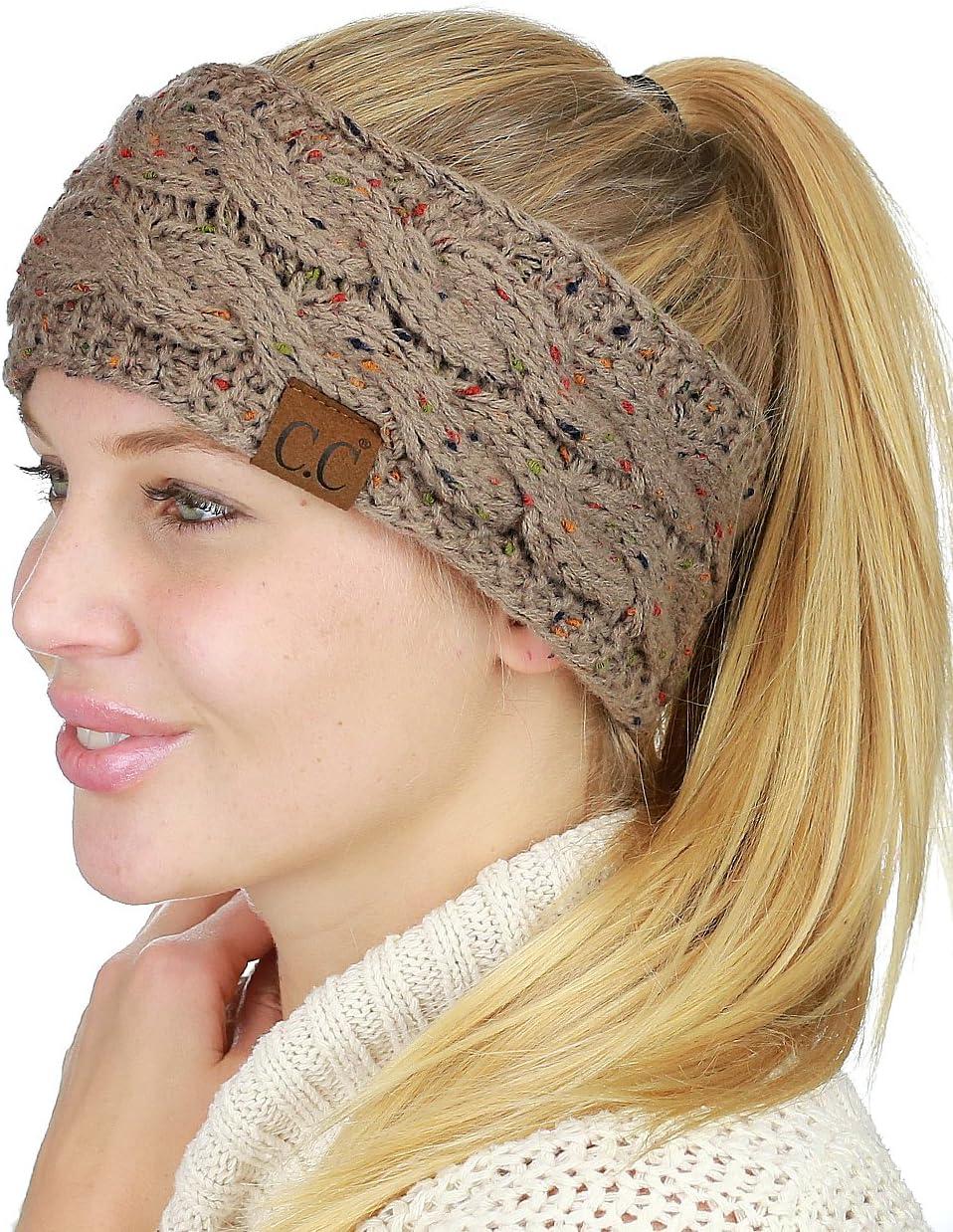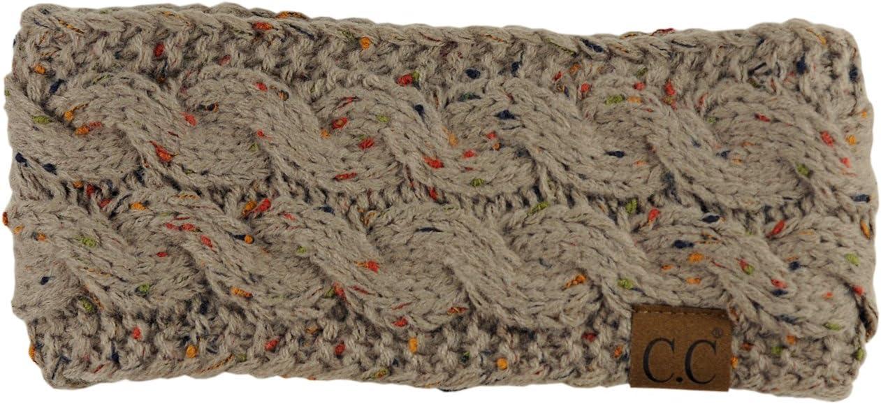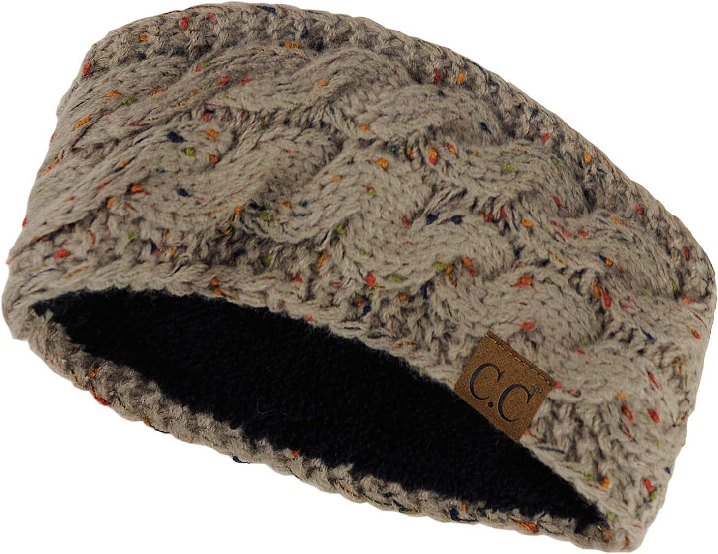C.C Soft Stretch Winter Warm Cable Knit Fuzzy Lined Ear Warmer Headband(Confetti Taupe)