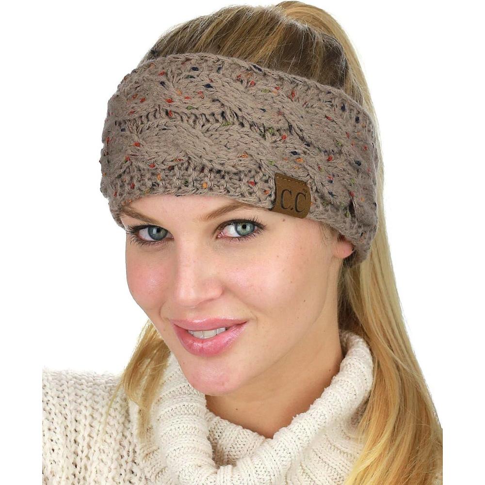 imageCC Soft Stretch Winter Warm Cable Knit Fuzzy Lined Ear Warmer HeadbandConfetti Taupe