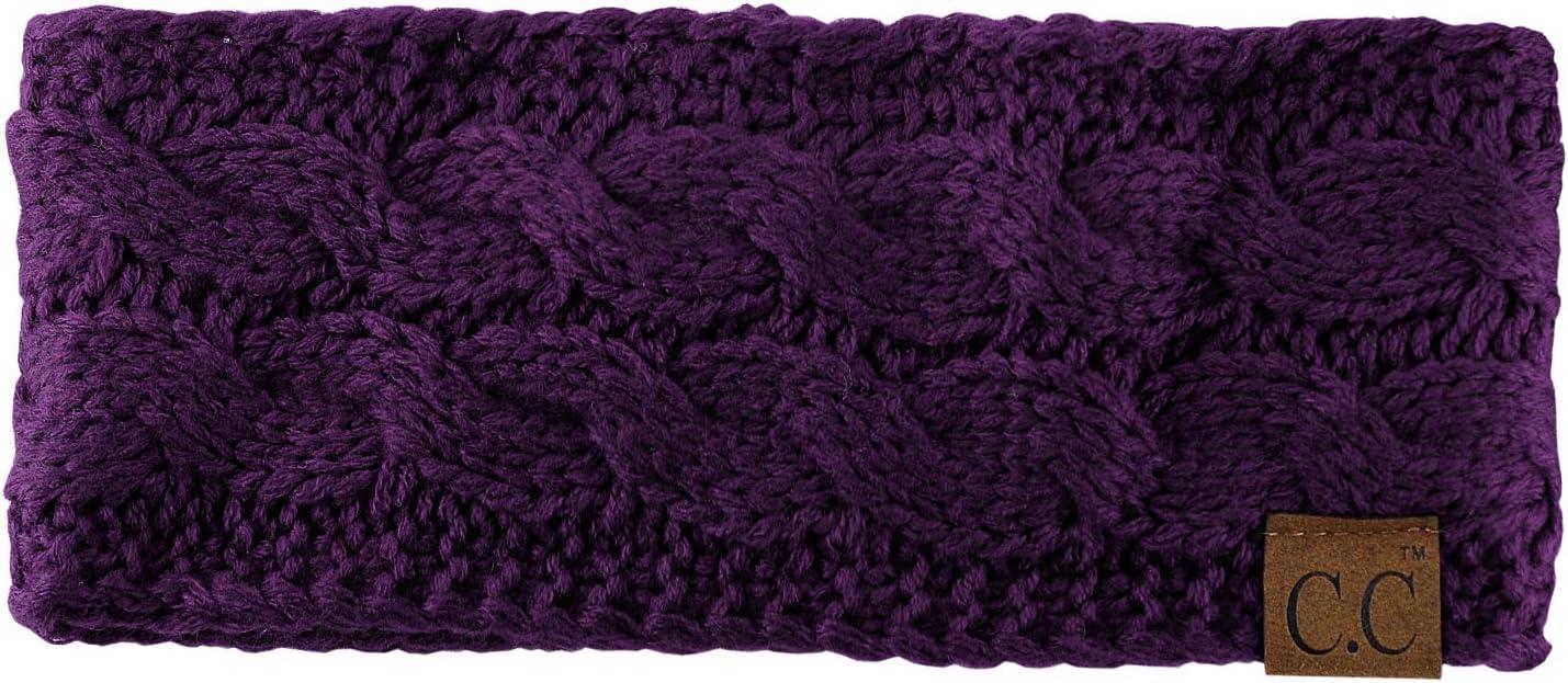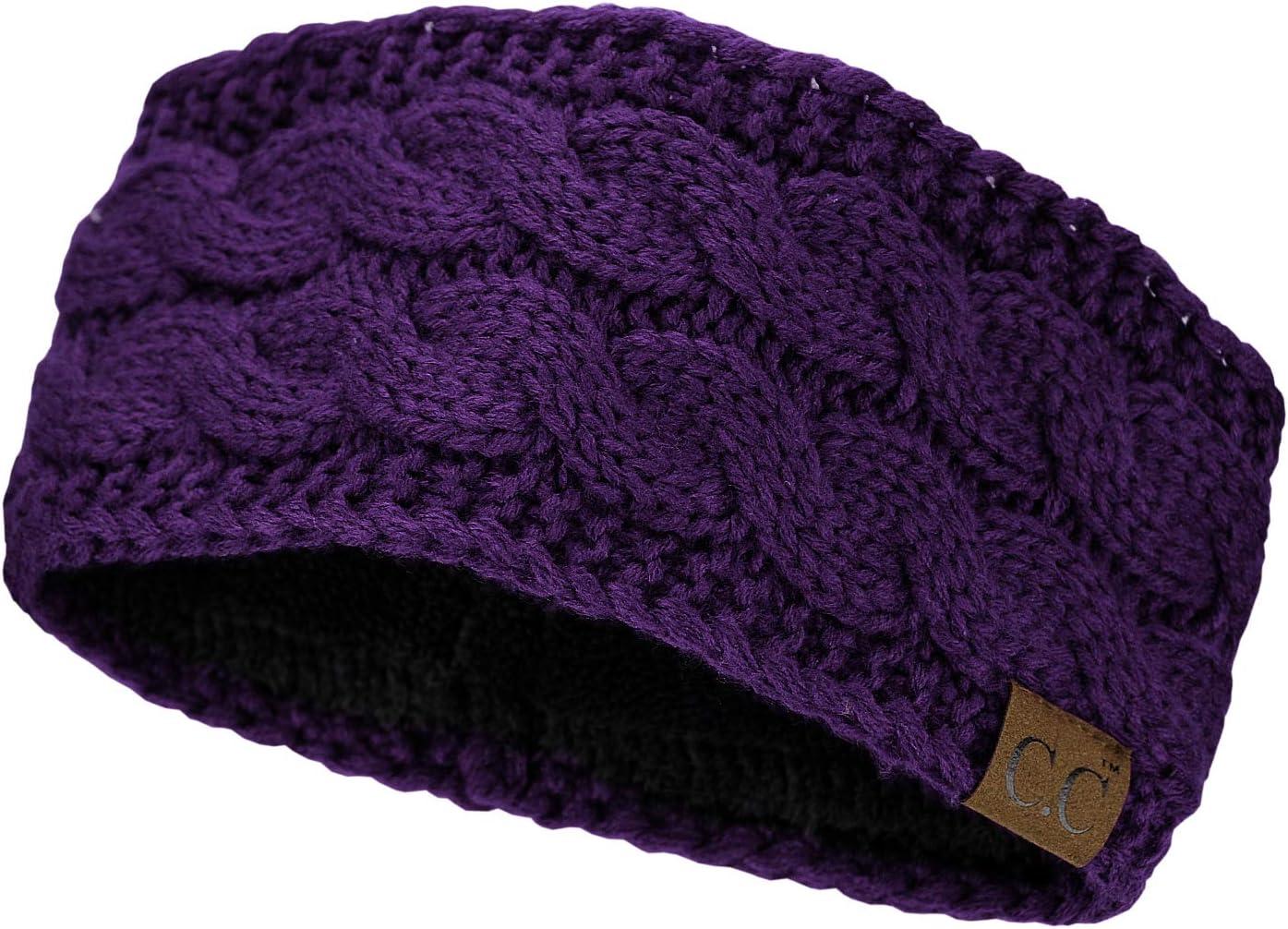 C.C Soft Stretch Winter Warm Cable Knit Fuzzy Lined Ear Warmer Headband(Dark Purple)